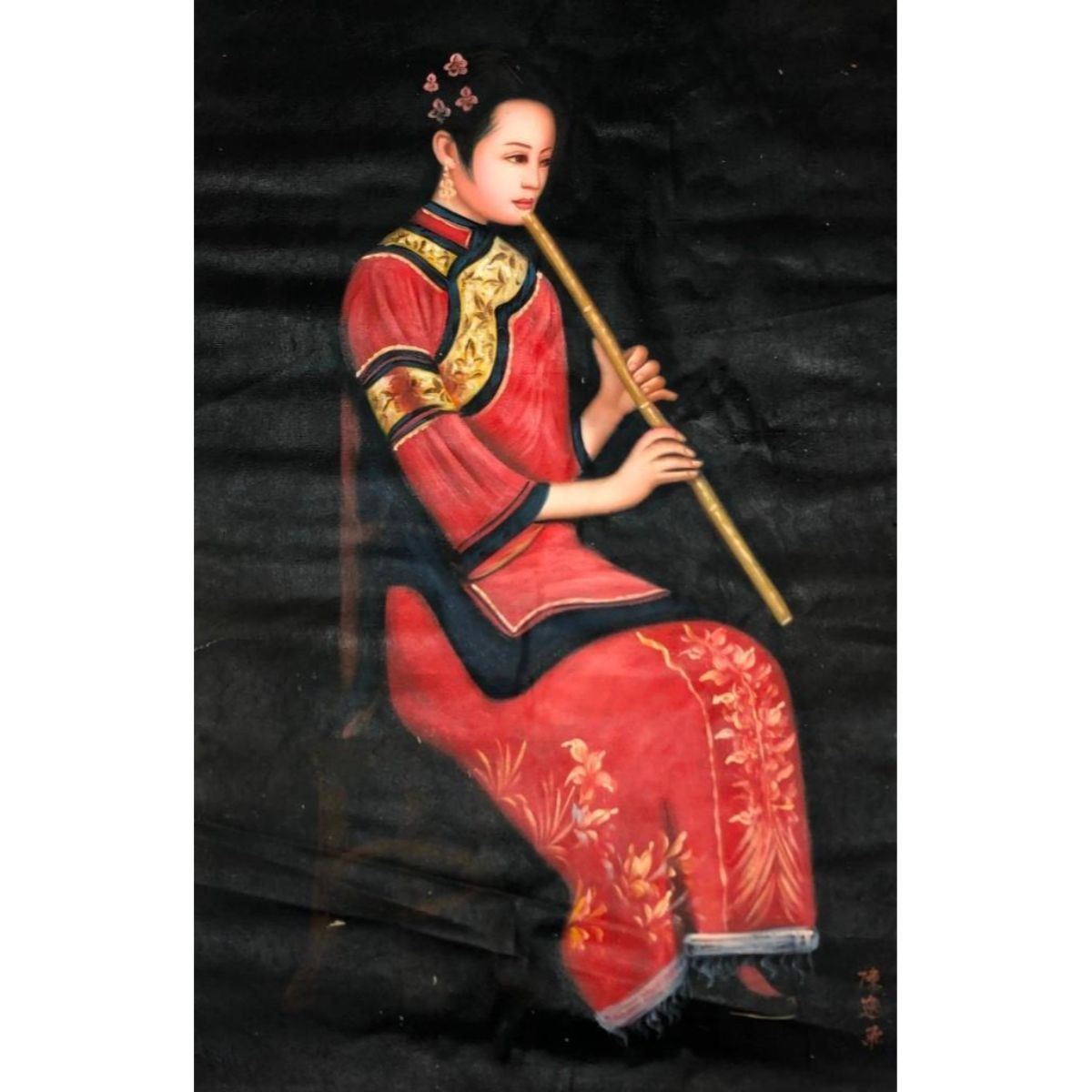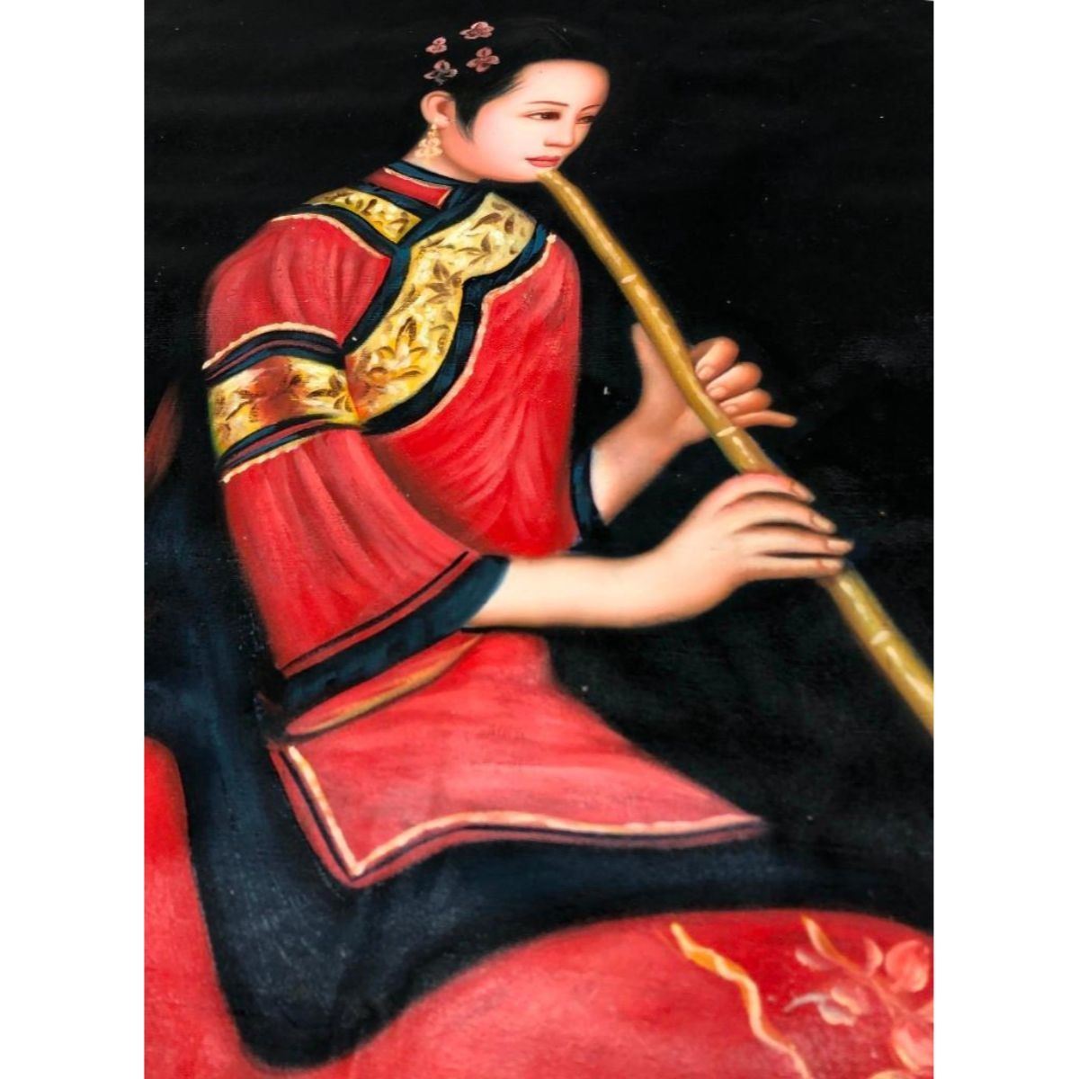 This Oriental Oil On Canvas Is A Signed Painting Of Musician. Excellent Detail In Brush Stroke Across This Canvas Accompanied With Brilliant Color Allows This Piece Of Art To Stand Out. Many hours Of Thought & Precision Have Been Taken To Create This Work Of Art. A Smooth Complection In The Face and Solid Color Through The Body Of The Painting Create A Flow That Catches The Eye. This Piece Signed By The Artist In The Lower Left Corner & Is A Must For Any Art Collection. Length:36 Inches Width: 24 Inches View Photos For Details