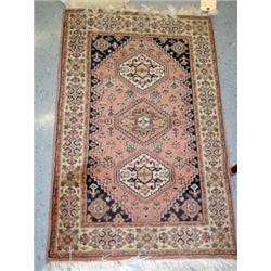 Three Oriental Scatter Rugs, Includes one Hand Woven in Turkey, Dark Blue Gound with Paisley Design and Rosette Border, Approximately 33'x24'.