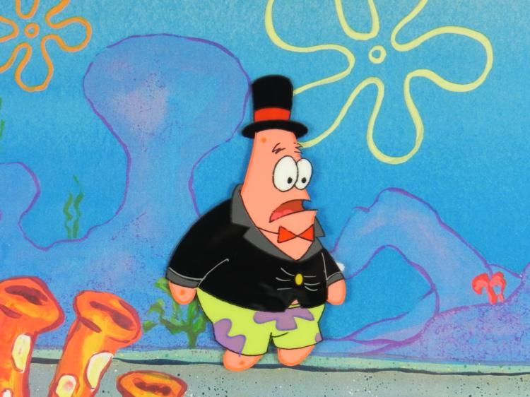 Orig SpongeBob Animation Cel, Background Patrick In Tux
