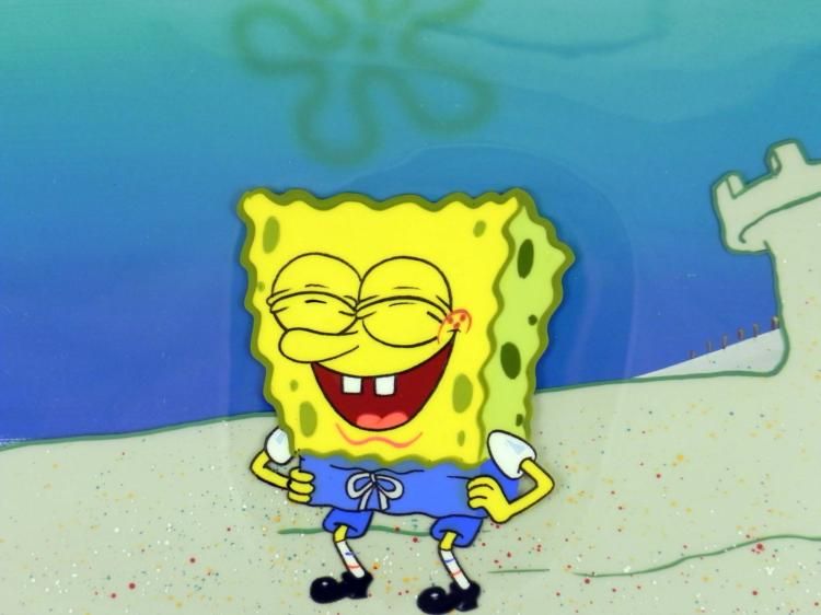 Orig SpongeBob Production Cel, 2 Layer Background Laugh