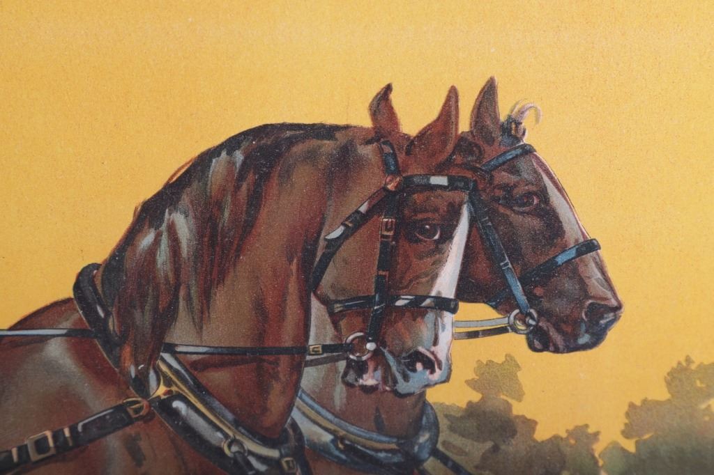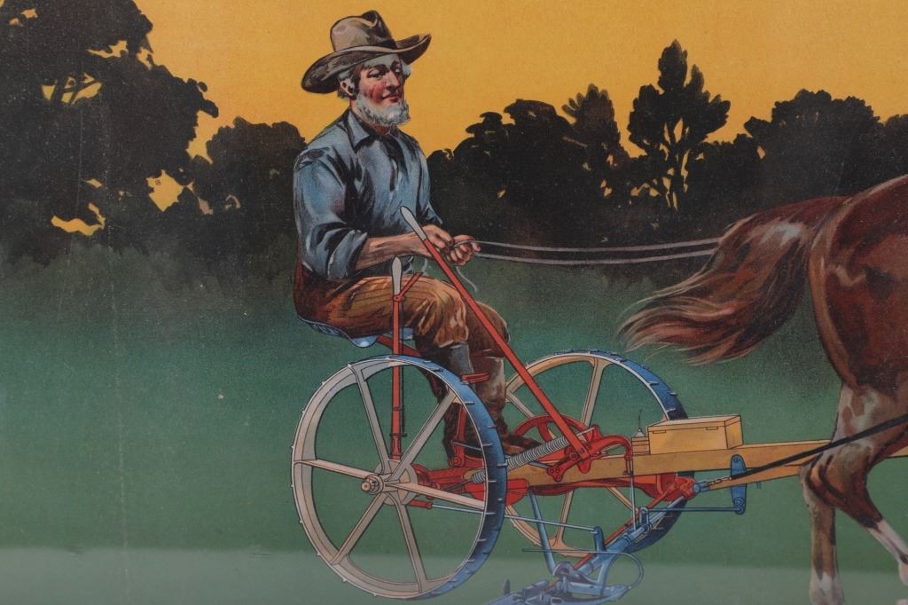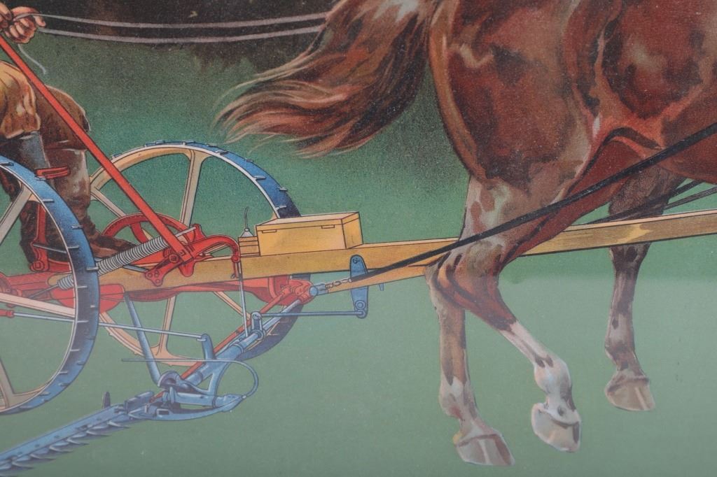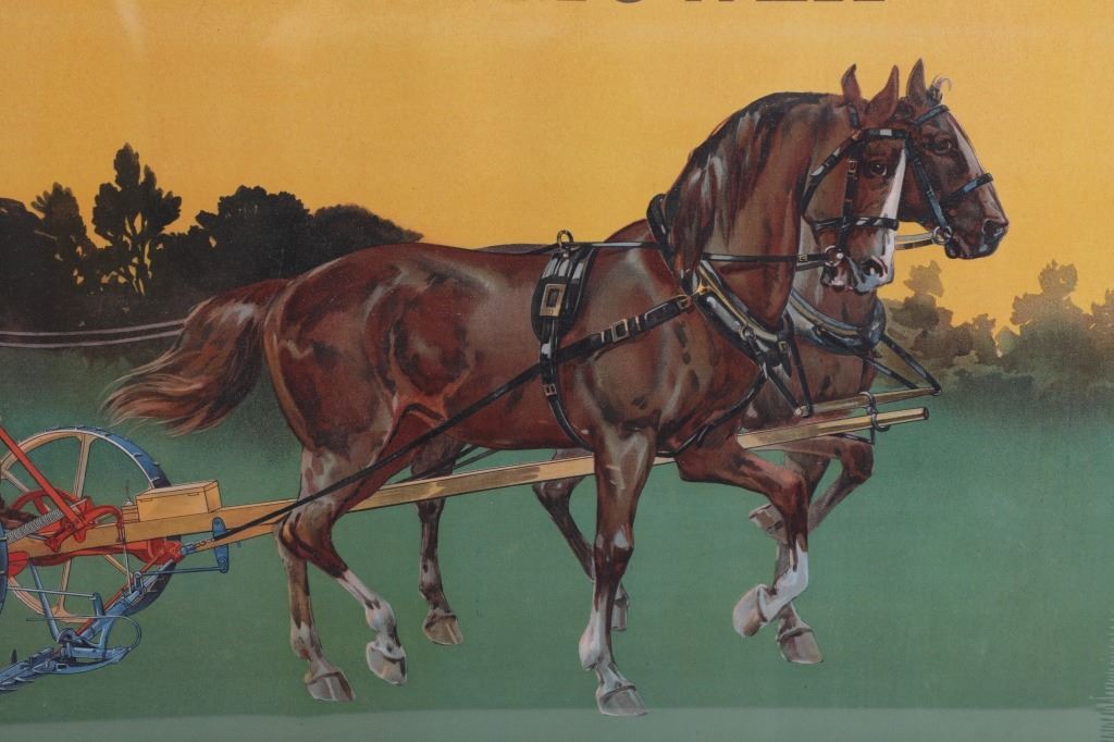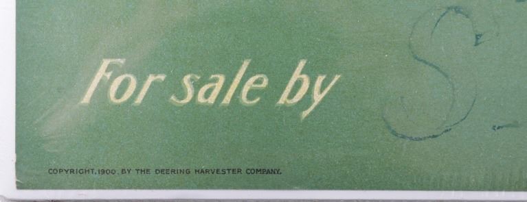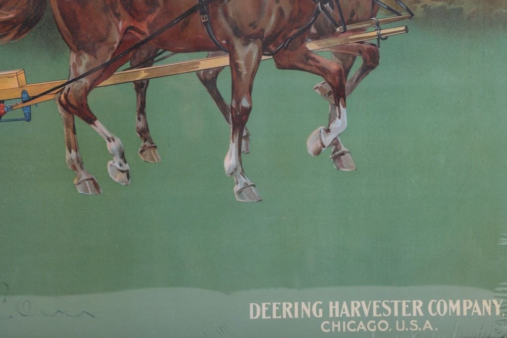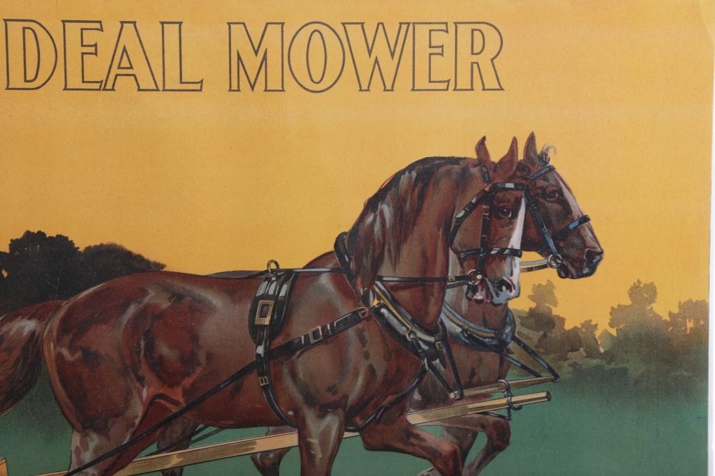 For your consideration is this original 1900 Deering Harvester Company poster from S.R. Buford & Company in Virginia City, Montana. S.R. Buford & Company was a dealer for Deering as well as Mitchell Wagons in Virginia City, Montana during the late 1800's to early 1900's. The piece shows a wonderful lithographed image of a farmer driving a sickle mower pulled by a team of horses. The top reads "Deering Ideal Mower" and the bottom reads "For Sale by S.R. Buford & Co. / Deering Harvester Company, Chicago, U.S.A.". The bottom left corner reads, "Copyright 1900 by the Deering Harvester Company". This early piece of advertising is in great condition considering it is over 120 years old. The advertisement is set on a large piece of foam board and is sealed with plastic to preserve its condition. It measures 19 7/8" L x 30" w.