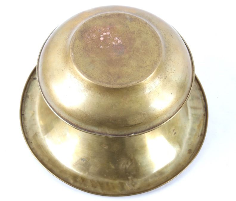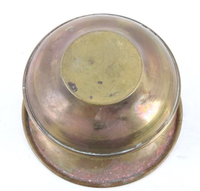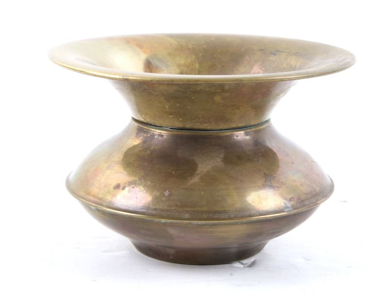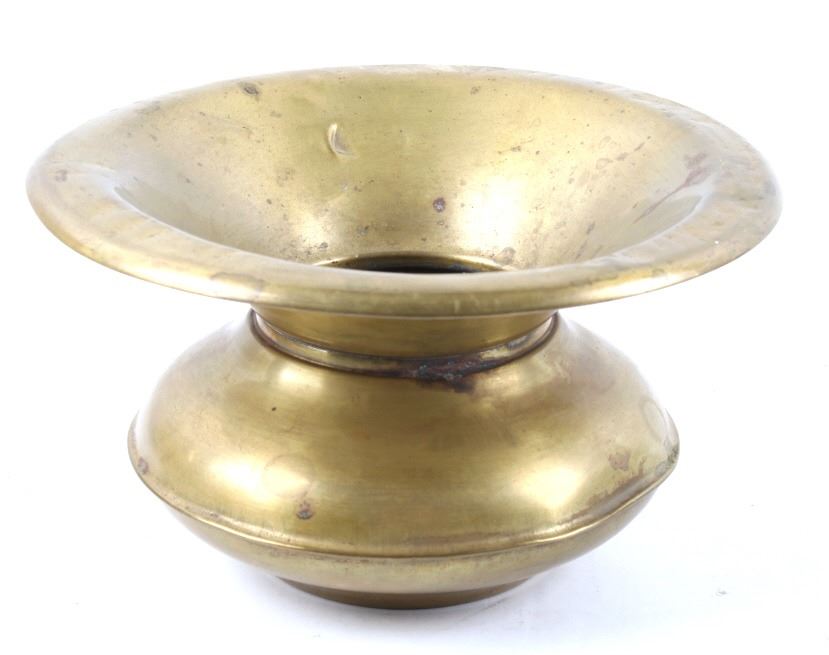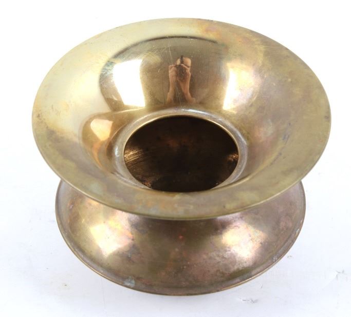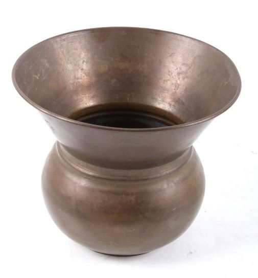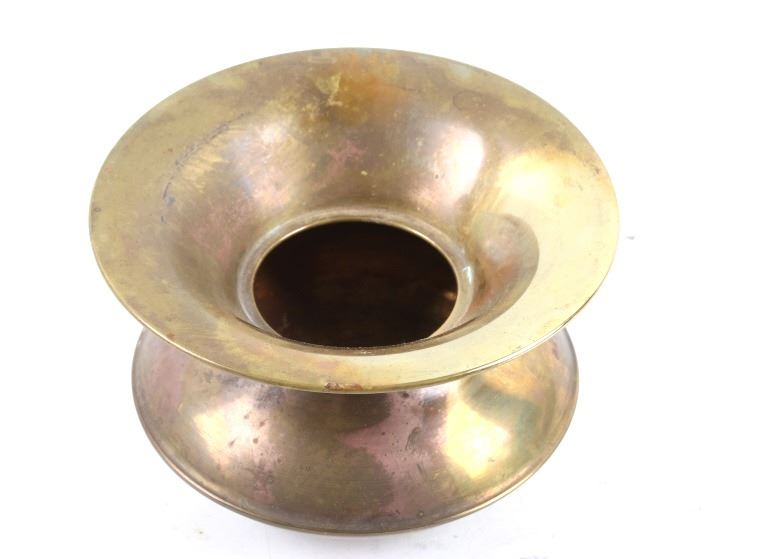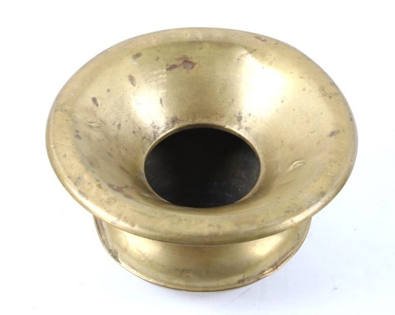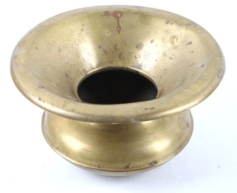 Included in this lot is a collection of original brass spittoons originating from the late 1800's to early 1900's. The collection consists of three brass western spittoons. The spittoons show brass construction with a wide rim. The first of the pieces is marked across the bottom "Farbarware New York Trade Mark" with a lion design at the center. The other two spittoons are unmarked. The pieces show good condition overall, with some light wear due to age. The largest piece measures 4 1/4" tall by 7 3/4" in diameter and the smallest measures 3" tall by 4 1/2" in diameter.