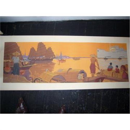 Lithographic Print by J.J. Midderigh (rather well-known Dutch illustrator of children?s books), showing ?Aramis? of the ?Messageries Maritimes? in a East Asia setting. ?Aramis? was with ?Messageries Maritimes? on their service to French East Asia from 1932 to 1939. Later she was seized by Japan and made into a Japanese troopship. She was torpedoed in 1944.