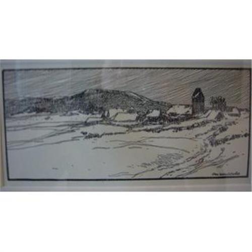German lithographs from 1912 calendar - AG01 Artist: Anonymous From a small hand-bound calendar found among the papers of an older Russian lady, these small prints are delicate, detailed and quite evolved in terms of graphic design. The smaller prints were used to illustrate the months of the year, and the larger prints were of places of note in the German countryside. Beautifully framed and lovely hung in a group? The image measures 6.5 x 3 inches, with the framed size as 12.25 x 8 inches. This piece will be shipped framed. (If you are interested in purchasing more than one piece, let me know and we will combine the shipping.) Please note that all of our posters, prints and pochoirs are original, vintage, non-reproduction pieces. Look at our other items for sale on this site.