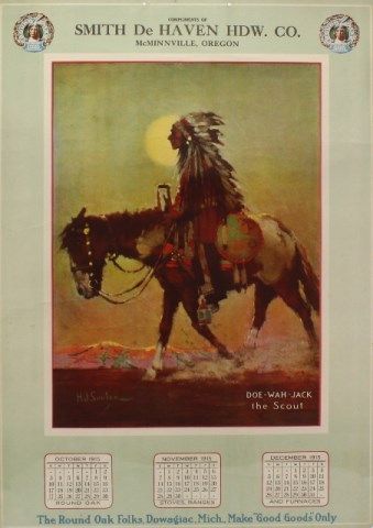 Oak Stoves by Smith De Haven HDW. Co. McMinnville, Oregon. Artwork Doe-Wah-Jack the Scout, 14" X 19". Est. 75-150