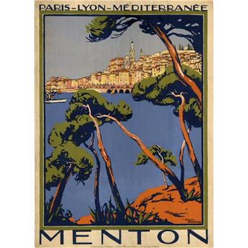 Original and very rare Roger Broders Travel Menton Poster.</em></td>