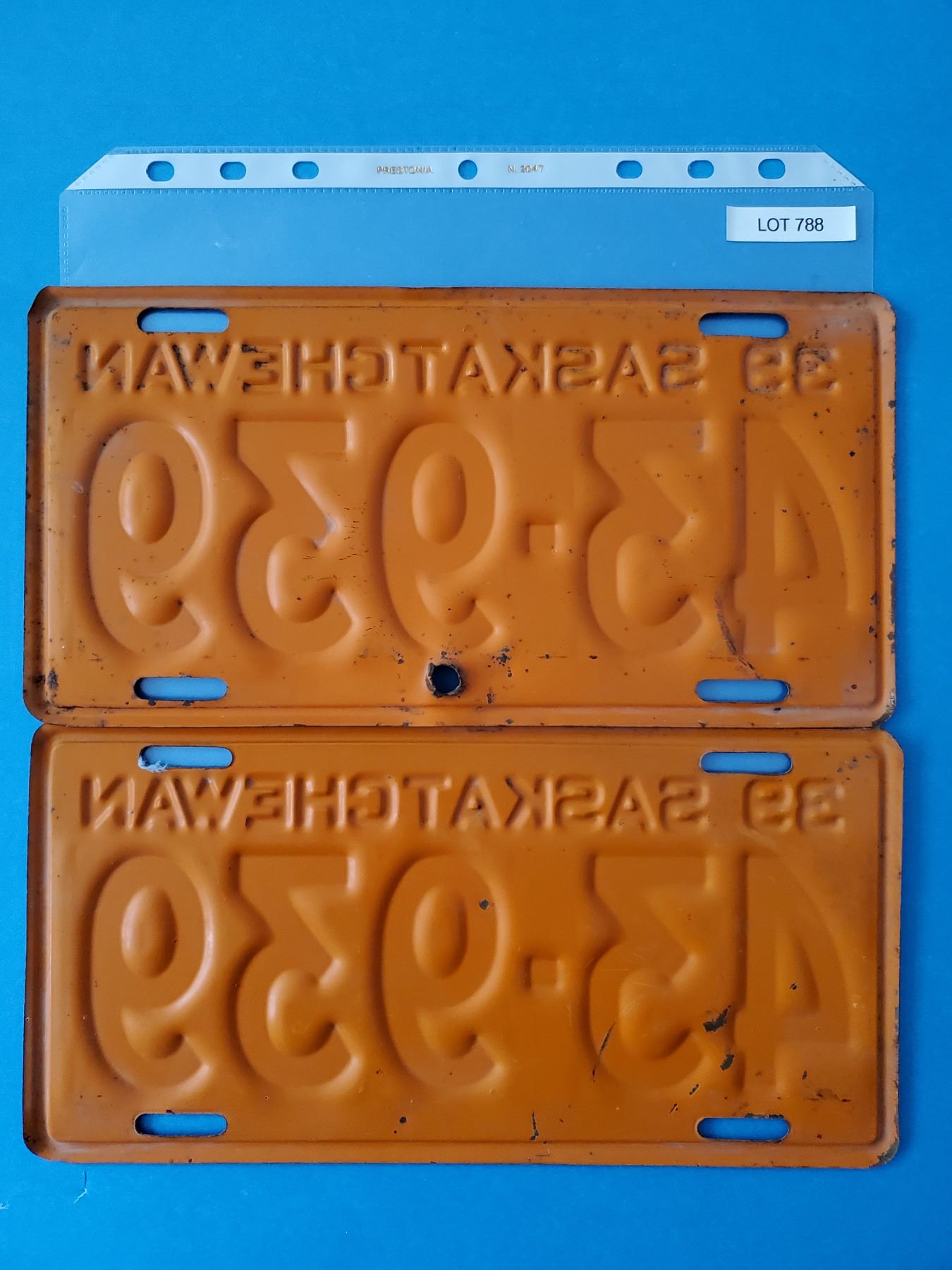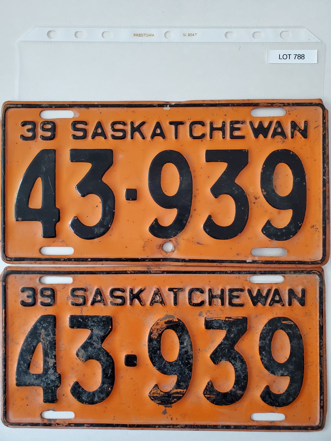 Original 1939 Sask. License plates. Good condition for the age. Minimal rust