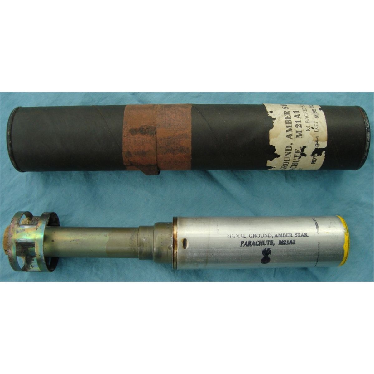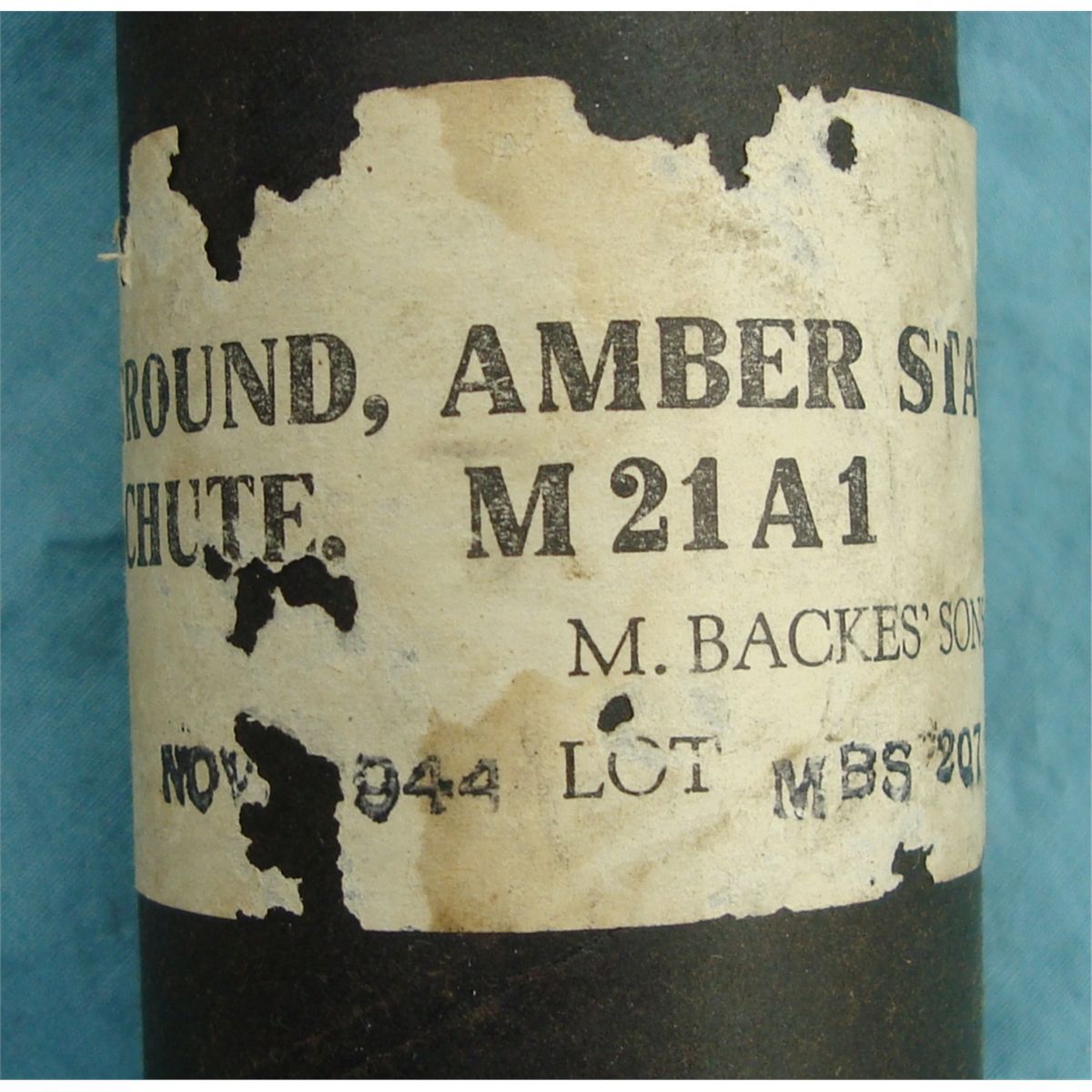 Dated Nov 1944, Signal, Ground, Amber star Parachute, M21A1 in original tube container.