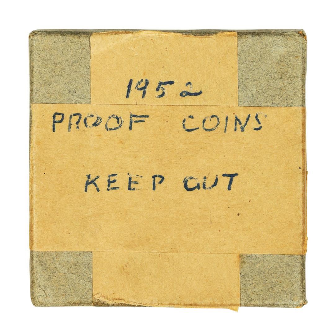 One Original 1952 (5) Coin Proof Set in Box, most of the coins are still sealed within the celophane but a couple are open as well.