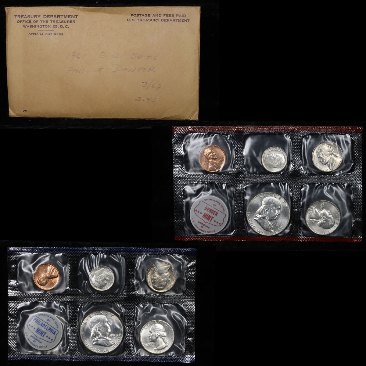 Original 1961 Silver Mint Set and includes 10 coins. This is a beautiful 1961 silver mint set and includes 1 of each coin minted for 1961. This lot includes 10 coins, the full p, and d runs.
