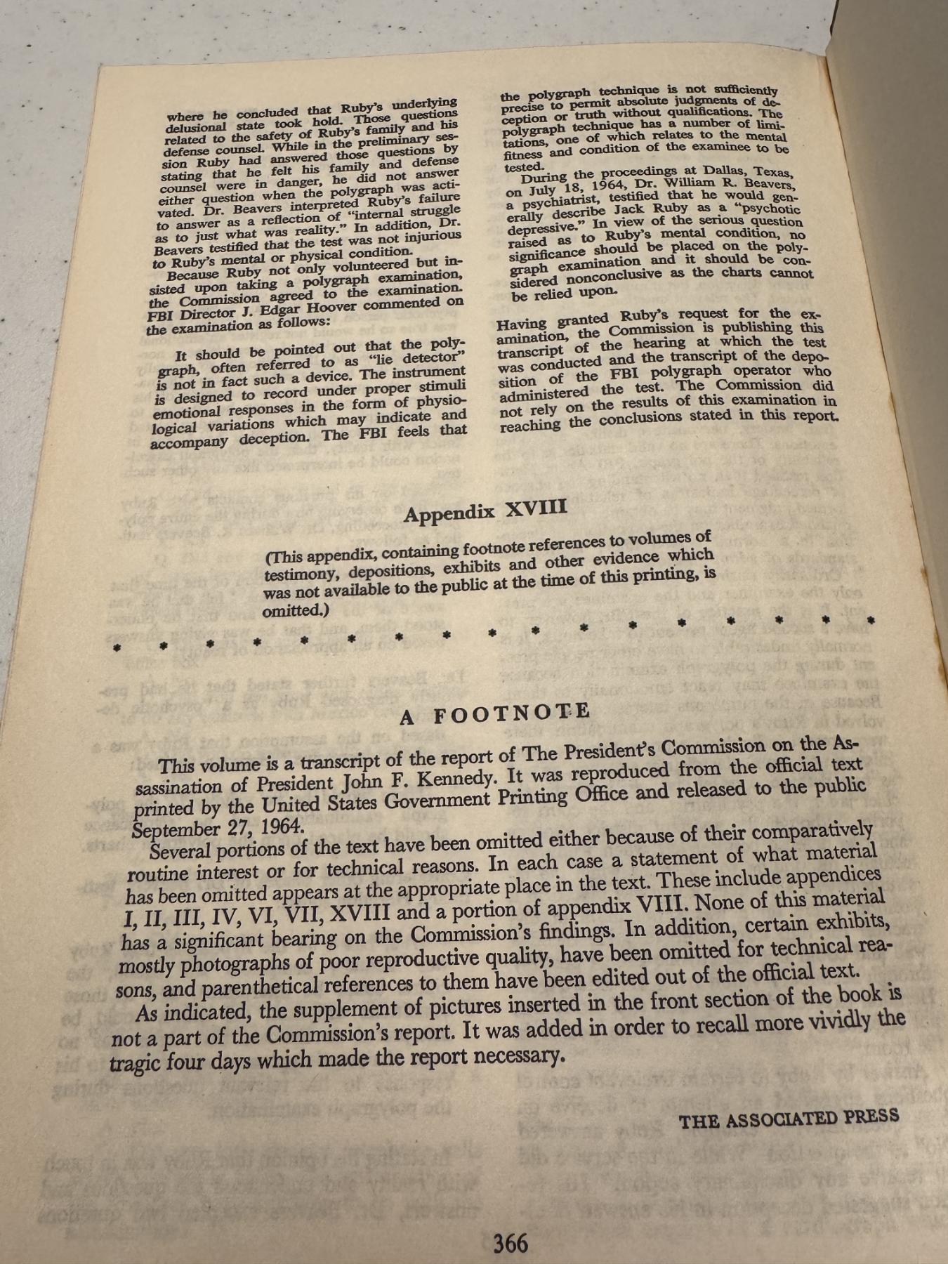 Original 1964 The Warren Report Kennedy Assassination Hard Back Copy - Mint Condition