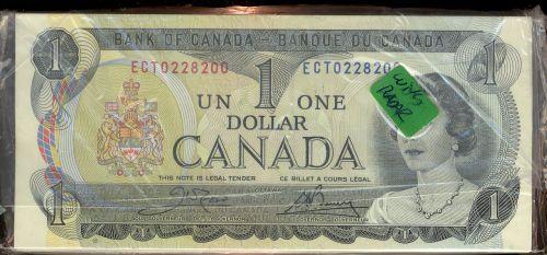 Original 1973 $1 bundle of 100 consecutive notes ECT0228200 to 299 including the RADAR note. All notes are choice uncirculated!