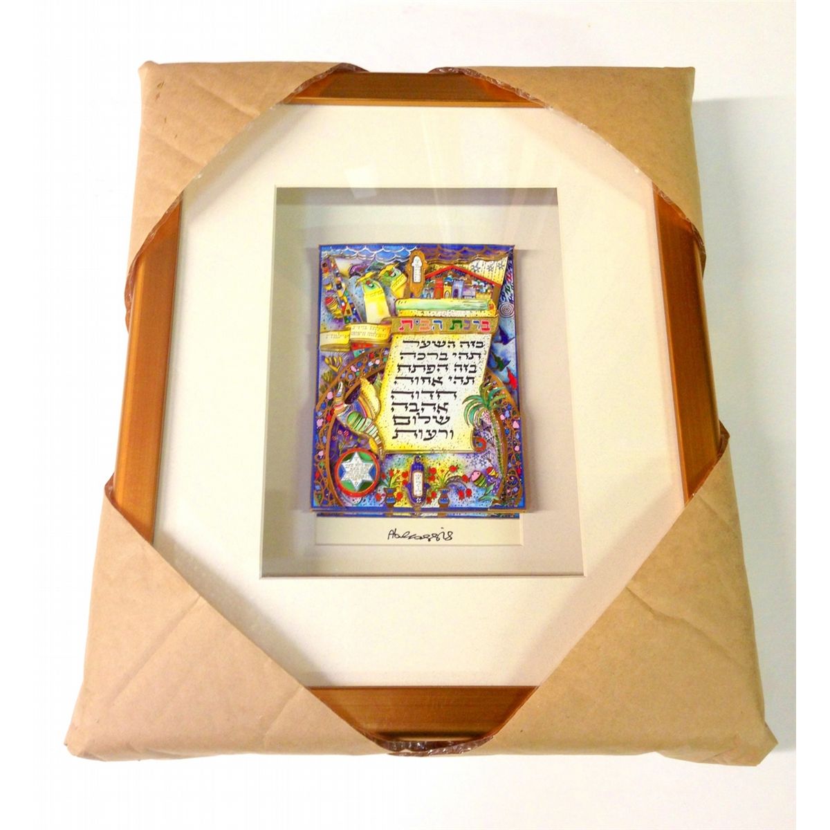 Unique 3-d decoupage all done by hand and hand signed by the artist Raphael Abecassis titled "Blessing of this House". 14x18 inches framed approx