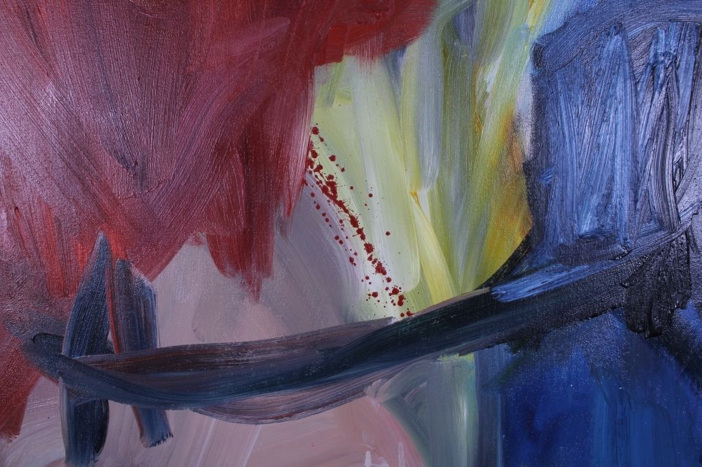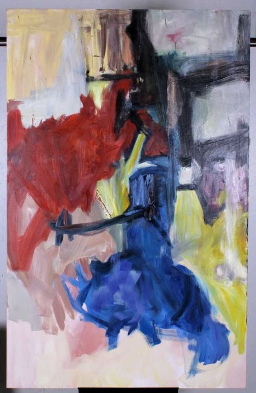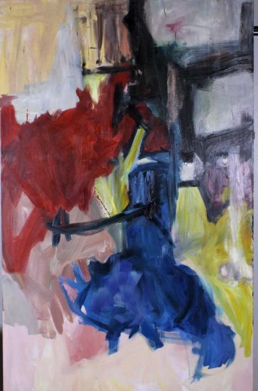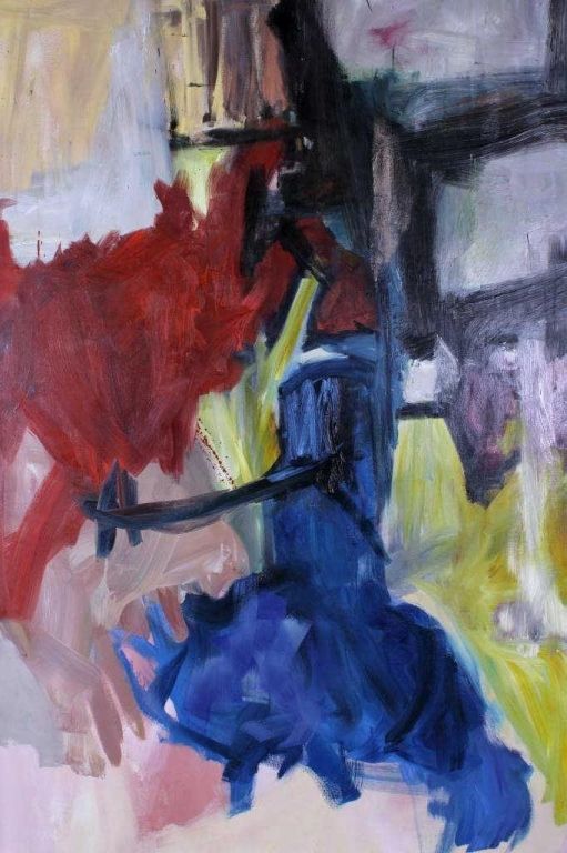 This is an original abstract oil painting hand done on canvas. The artist of this piece is unknown. The piece has a great color pallet and flowing brush strokes. This is a wonderfully large mural size work of art. The original artwork measures 78"x49.75" and is 1.5" deep.