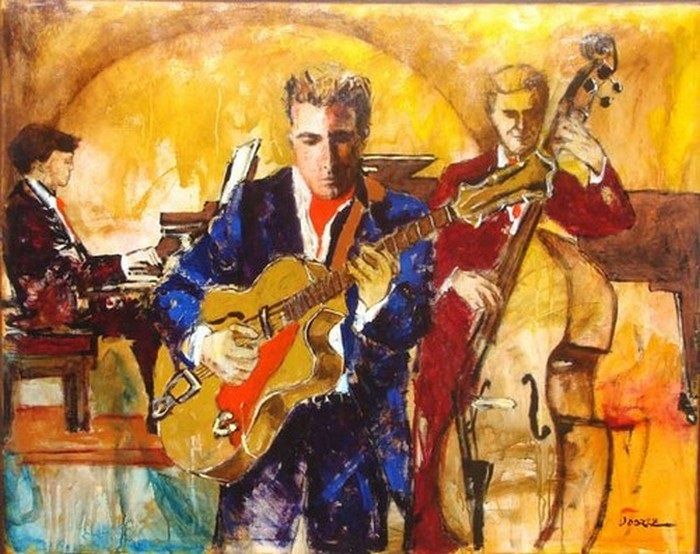 Original Acrylic on Canvas Handsigned by Filho Joarez titled "Jazz Trio". Dimensions are 60 X 48. Certificate of authenticity provided. Authentic guaranteed! CJRAP438001750