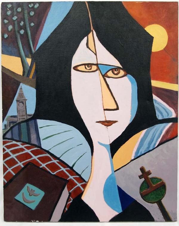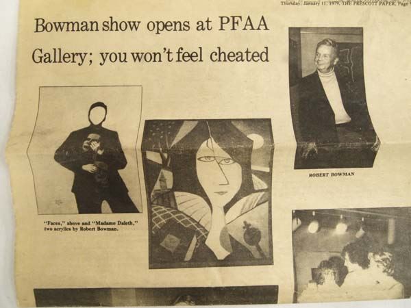 1978 Original Acrylic ''Madame Daleth'' by Arizona Artist Robert Bowman (1923-2011), measures 20''L x 24''H, signed, titled, and dated on back by artist, comes with January 11, 1979 Prescott Arizona Newspaper article about his one man show there. Artist Bio: Robert was born on February 9, 1923 and passed away on September 29, 2011. Robert was a pilot in WWII, a heavy equipment operator in Bagdad, AZ, an honored Mason and an established artist. He was self taught and studied at the Phoenix Academy of Fine Arts in 1946 and 1947 through the G.I. Bill.