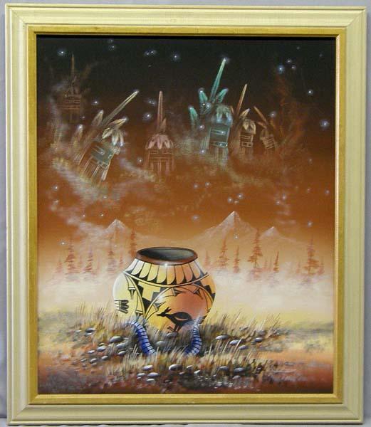 Original Acrylic by Santa Fe Artist Jim Valenito. Framed. Visual measures approx. 23.5''Hx19.5''W. SHI $50.