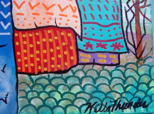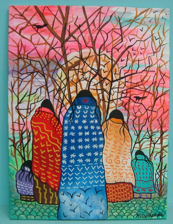 Original Acrylic on Canvas-Kills Thunder. 24''H x 18''W, ''Medicine Woman'' is signed and dated by the artist.