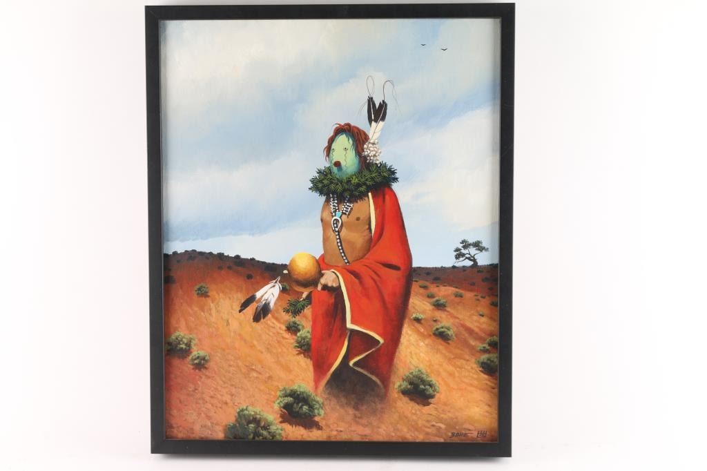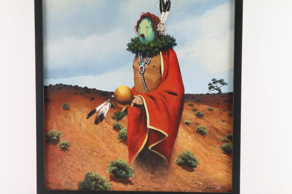 by Al Bahe (Born 1959) was active/lived in Arizona. Al Bahe is known for Navajo Yei Figures. This picture depicts mudhead Kachina, hand-signed lower right, Measures 15.5" x 19.5".