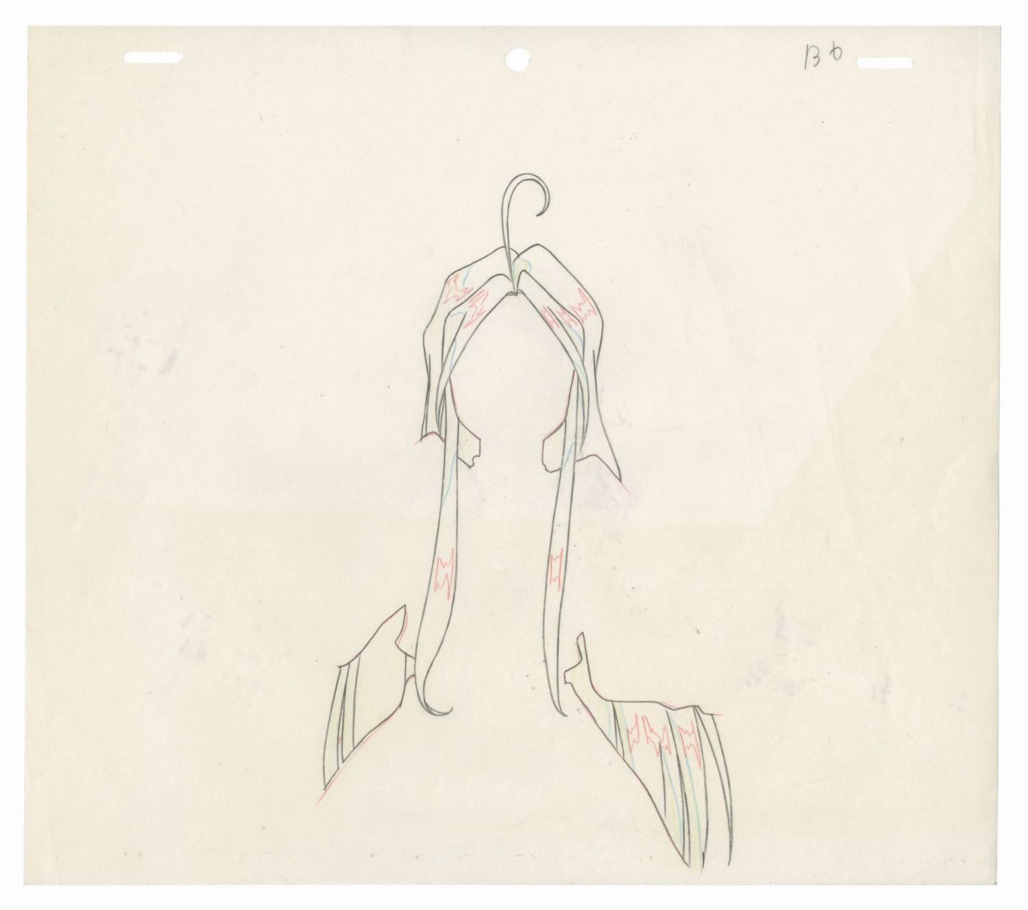 (AIC, 1993) An original production cel and background from Ah! My Goddess. The cel features the goddess Skuld with her trademark debugging mallet, and is placed over a hand-painted background. A production drawing is also included. The image measures 7"x9.75" on the 9"x10.5" cel on the 9.75"x14.25" background. The condition is very good, with minor paint wear near Skuld's waist, and a few spots of surface wear on the background, including tape residue from use.