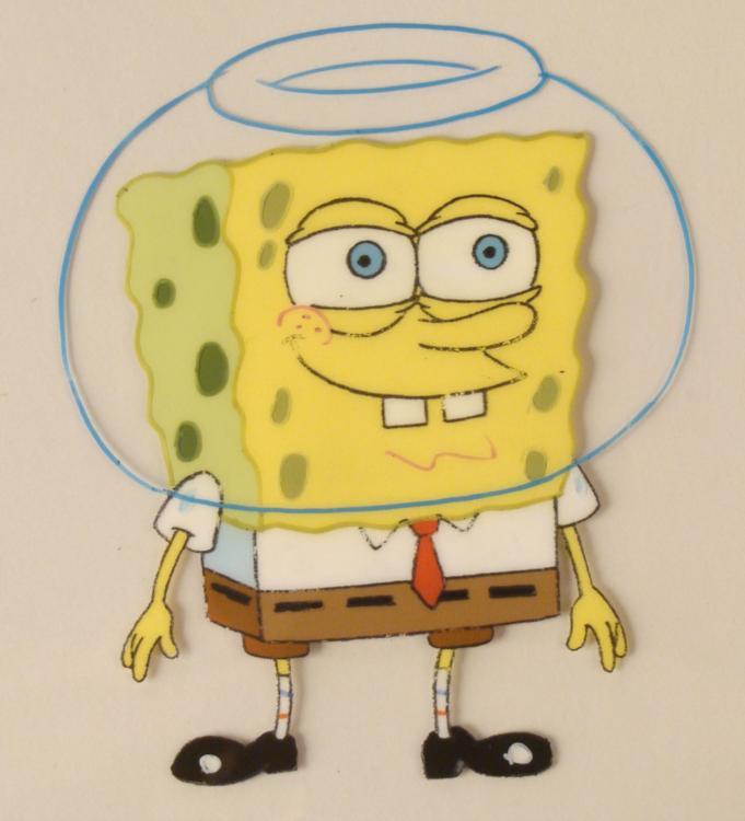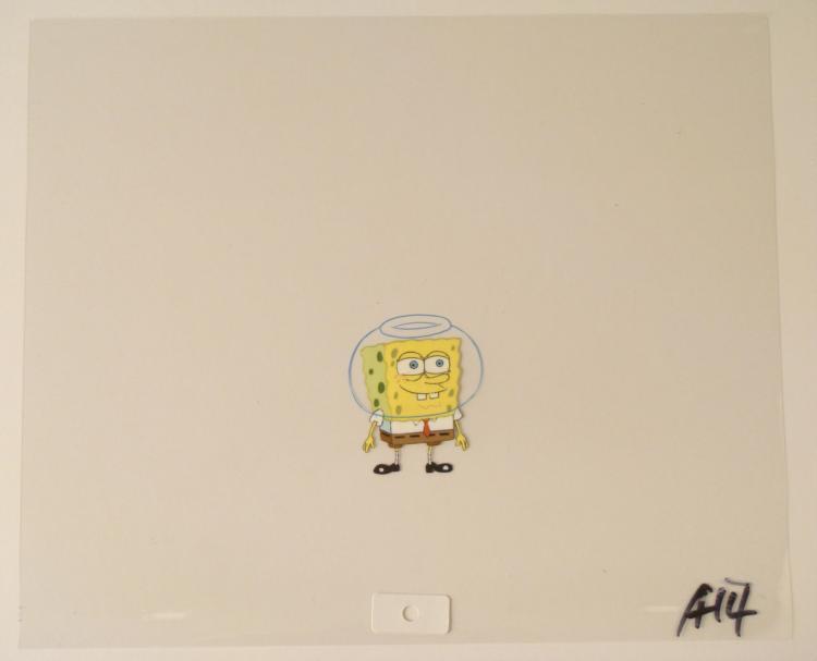 This original animation cel is from the Nickelodeon TV show SpongeBob Squarepants. The story takes place under the deep blue sea in Bikini Bottom, where SpongeBob resides. SpongeBob, who is a yellow, porous sponge, is your typical happy-go-lucky character, as he is always cheerful and enjoys making people laugh. Patrick Star, SpongeBob's neighbor who is a starfish, is your average children's show idiot, as he boasts knowing nothing and is often getting himself into ridiculous situations. Between the homes of these two lies the home of the miserable Squidward, a squid, who is known for being grouchy and playing tricks on SpongeBob and Patrick. Both SpongeBob and Squidward work at the Krusty Krab, a fast food business run by the greedy money-loving Mr. Krabs, a crab, the arch rival of the evil, possibly misunderstood, Plankton. Another neighbor, Sandy Cheeks, an athletic squirrel who normally wears an astronaut's space suit, was introduced in "Tea at the Treedome." She spends most of her time inventing and experimenting. * SpongeBob is in Sandy's house. * Original Production Animated Cel Overall Size of Cel: 10 1/2" x 12 1/2" Very Good Condition This is an original hand-painted cel set-up used in the production of an episode of "SpongeBob SquarePants." Each one-of-a-kind set-up represents a slight change in position of the characters. When individually photographed and projected in rapid succession, the images appear to move. * To create production cels, the original animator's drawing is transferred onto an acetate cel (by hand-inking and/or photo copying). The cel is then hand-painted on the reverse side. * The cel received by the winning bidder may be ever so slightly different from the one in the auction photos. * The cel is ready to be matted and framed. The animator's notations are at the bottom of the cel. * *