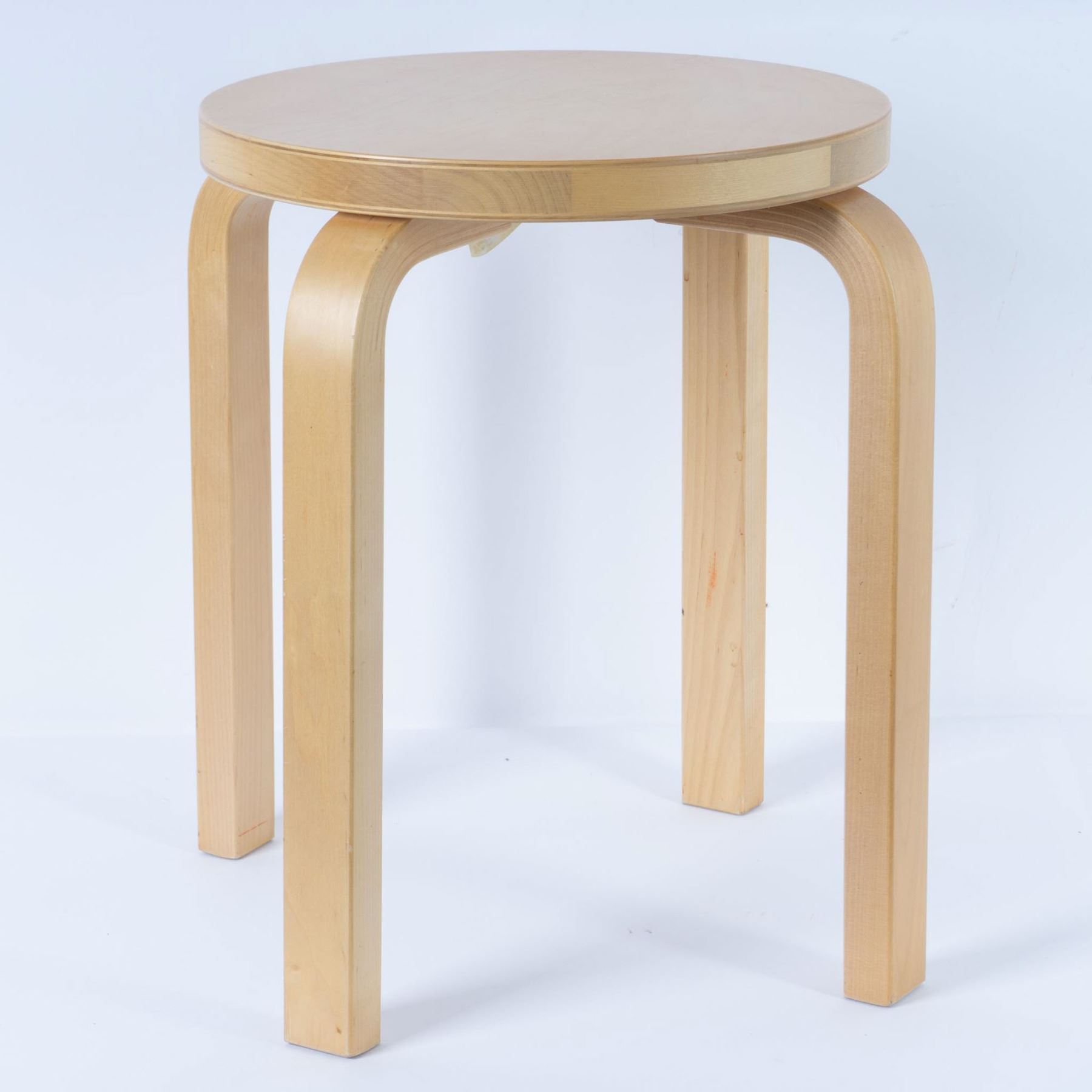 An original Artek bentwood stool designed by the renowned Finnish modernist architect and designer Alvar Aalto(1898€“1976). Widely considered one of the pioneers of modern architecture and furniture design, Aalto is celebrated for his innovative use of bentwood techniques and his ability to harmonize form and function. This iconic piece, known as the Model 60, showcases Aalto's revolutionary L-leg design, patented in 1933. The seamless curved birch legs, which are both structural and aesthetic, represent a groundbreaking departure from traditional joinery methods. Aalto's designs are characterized by their organic forms and human-centric approach, making him one of the most influential figures in 20th-century design. Crafted from high-quality birchwood, this stool exemplifies the mid-century Scandinavian design ethos, emphasizing functionality, simplicity, and the use of natural materials. The Model 60 stool has become a staple in modern interiors, admired for its adaptability as seating, a side table, or a decorative element. This stool bears the original Artek backstamp, reading Original Alvar Aalto Artek Made in Finland 0498. Originally designed in 1933, the Model 60 remains a timeless classic, widely appreciated for its innovative craftsmanship and historical significance. Alvar Aalto was a visionary architect and designer whose career spanned several decades, during which he shaped modernist aesthetics and functionality. Aalto's architectural works include iconic structures like the Paimio Sanatoriumand Finlandia Hall, while his furniture designs, including the Model 60 stool and the Paimio chair, revolutionized furniture production by introducing innovative bentwood methods. Aalto co-founded Artek in 1935 alongside his wife, Aino Aalto, and two collaborators, with the goal of producing furniture and lighting that seamlessly complemented his architectural vision. His works are celebrated for blending modernism with natural materials and forms, making them enduring symbols of Scandinavian design. The Model 60 stool, in particular, reflects Aalto's dedication to creating designs that are not only functional but also deeply connected to nature and human experience. Designer: Alvar Aalto Manufacturer: Artek Year of Production: Late 20th century Material: Bentwood birch Dimensions: Height: 17.32 in (44 cm), Diameter: 15.75 in (40 cm)