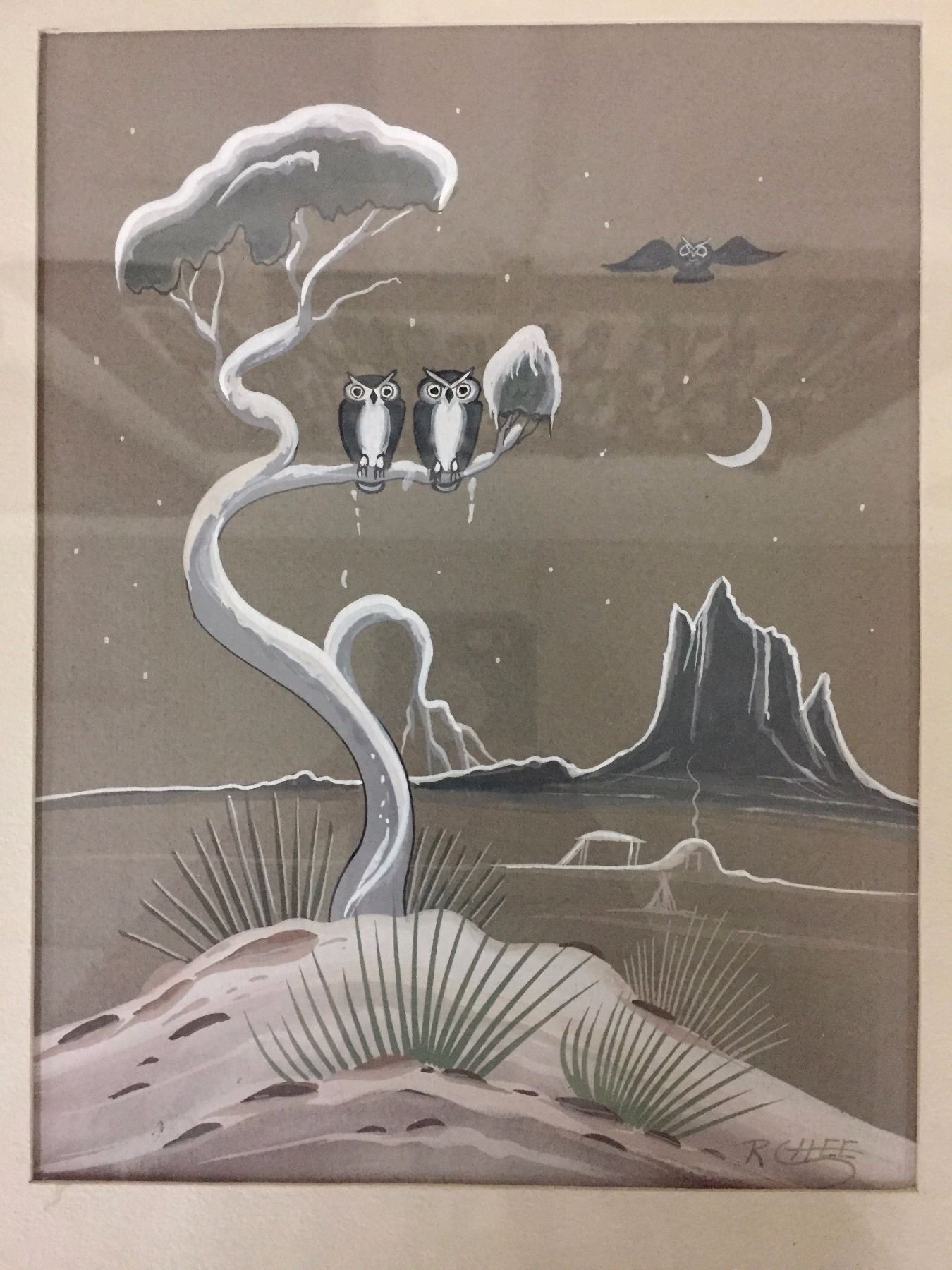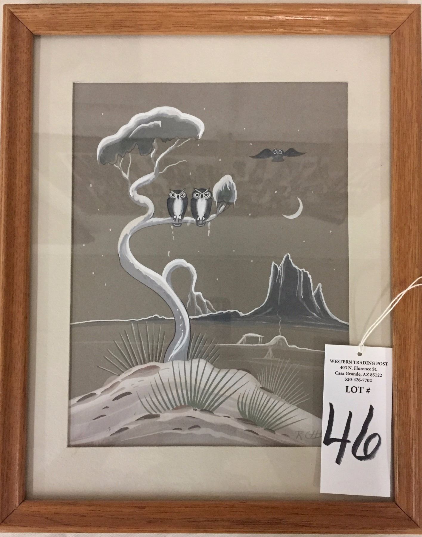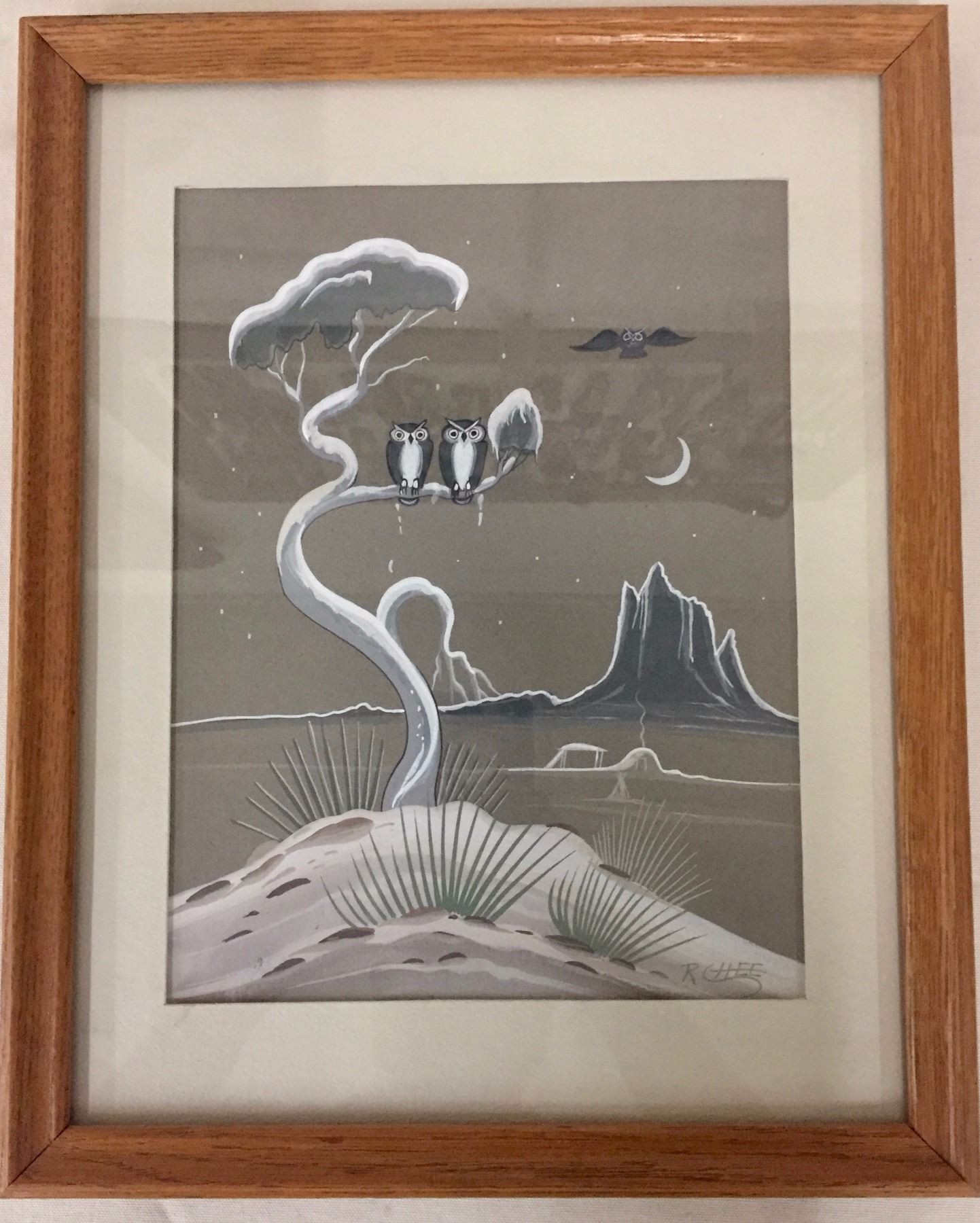 Maker: Robert Chee. Approx. Age: Vintage (Circa 1960s). Size: 12 1/4” w x 15 1/4” l including frame. Additional Info: Original artwork by Robert Chee. Chee was a US Army WWII Veteran and Navajo Artist. Some of Chee’s works are part of collections in the Smithsonian and Museum of the Southwest. Condition: Good. Normal wear expected. Please look closely at the pictures - they are an important part of our description. Shipping: There will be a $10 handling / packaging fee for shipping this lot. The actual cost of postage will be added on top of that.