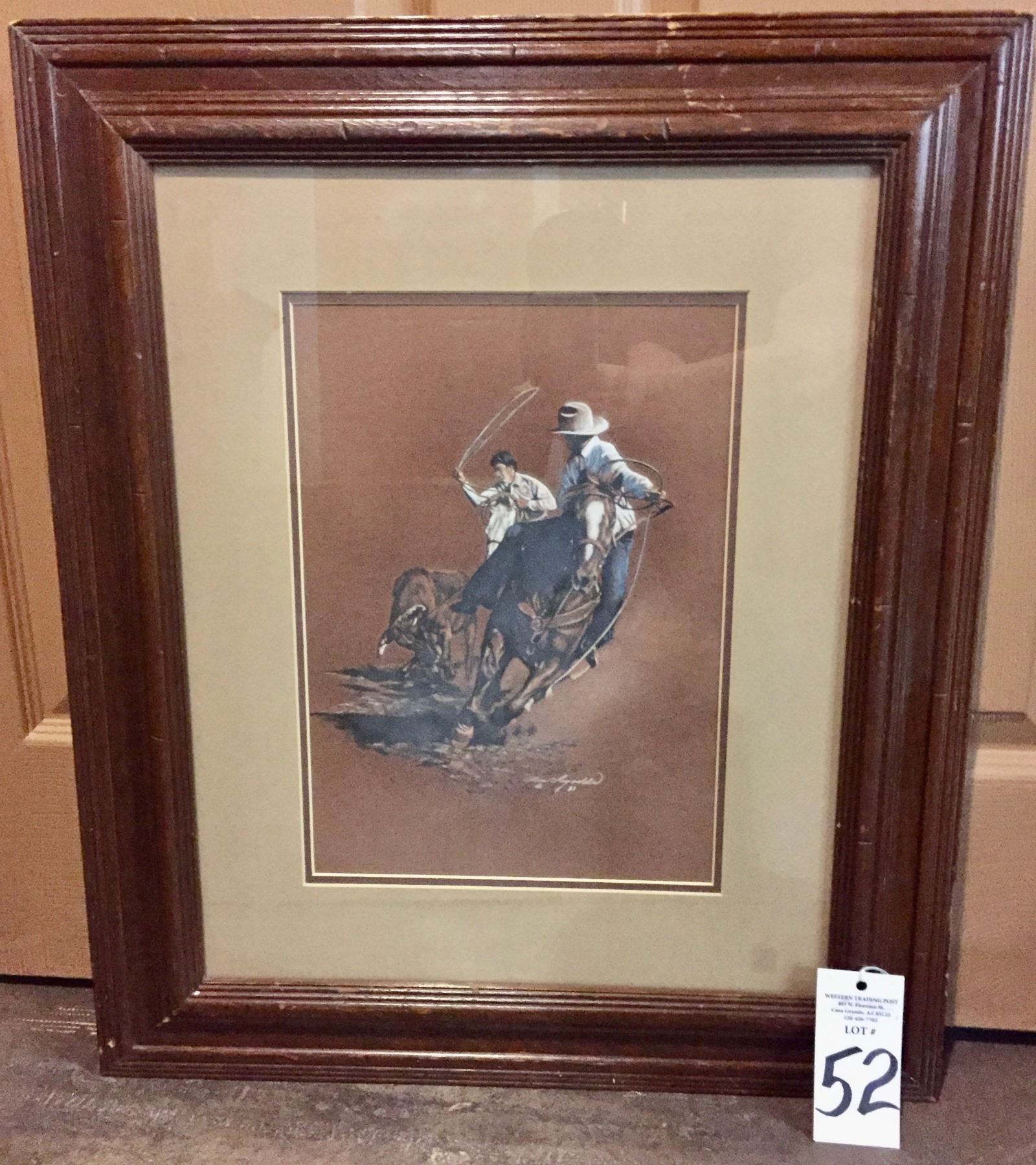 Description: Included for sale in this lot is original artwork of Native American Ropers, created by artist L. Reynolds. Maker: Signed, L. Reynolds. Approx. Age: Dated 1981. Size: 21-1/2”w x 25-1/4” long. Condition: Good for its age, normal wear expected. Please look closely at the pictures - they are an important part of our description. Shipping: There will be a $10 handling / packaging fee for shipping this lot. The actual cost of postage will be added on top of that.