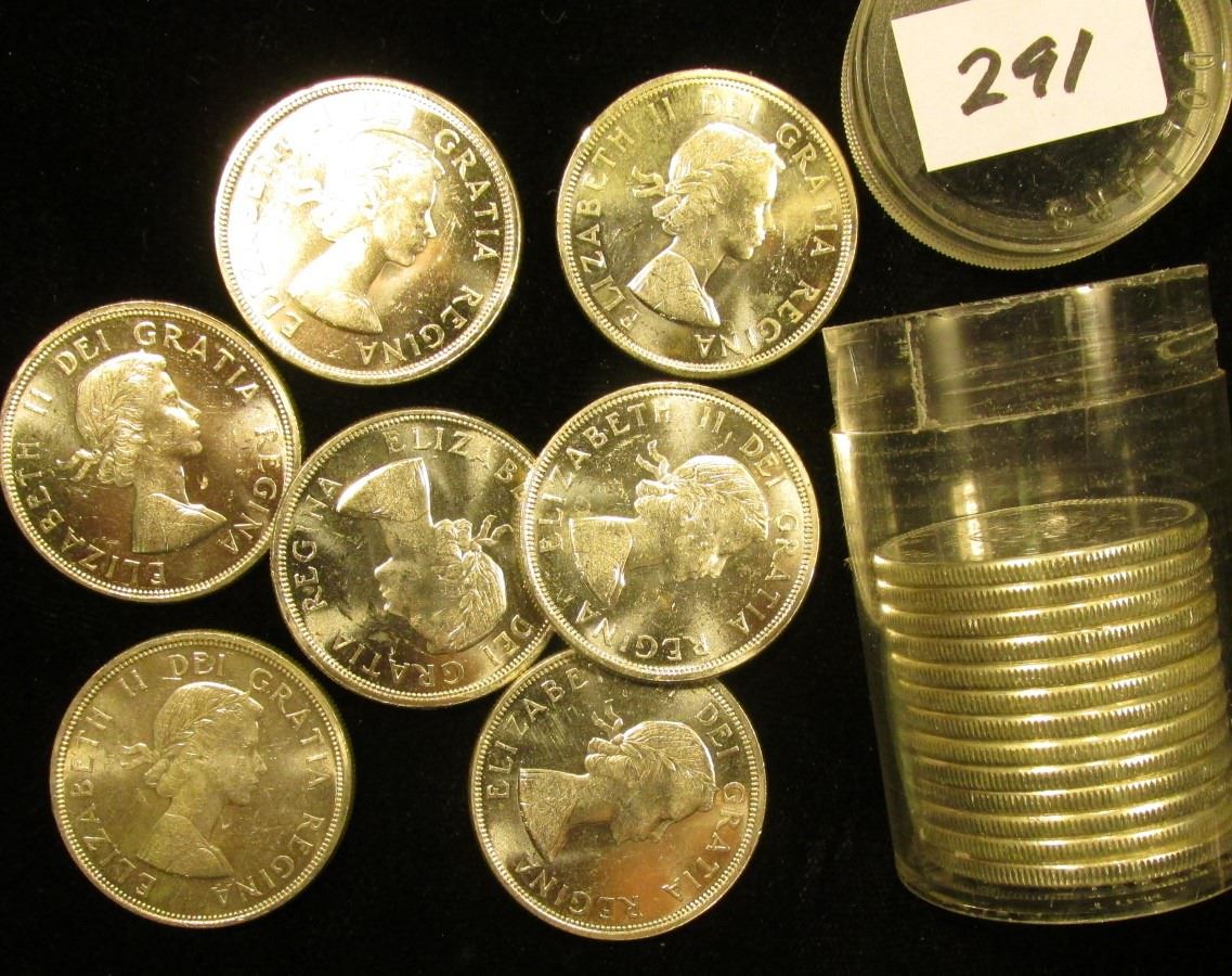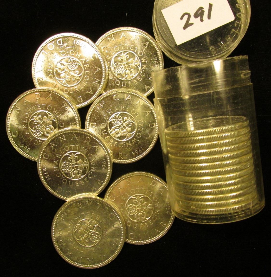 Original BU Roll of 1864-1964 Charlettetown Quebec Canada .800 Fine Silver Commemorative Dollars in a plastic tube. (20 pcs.).
