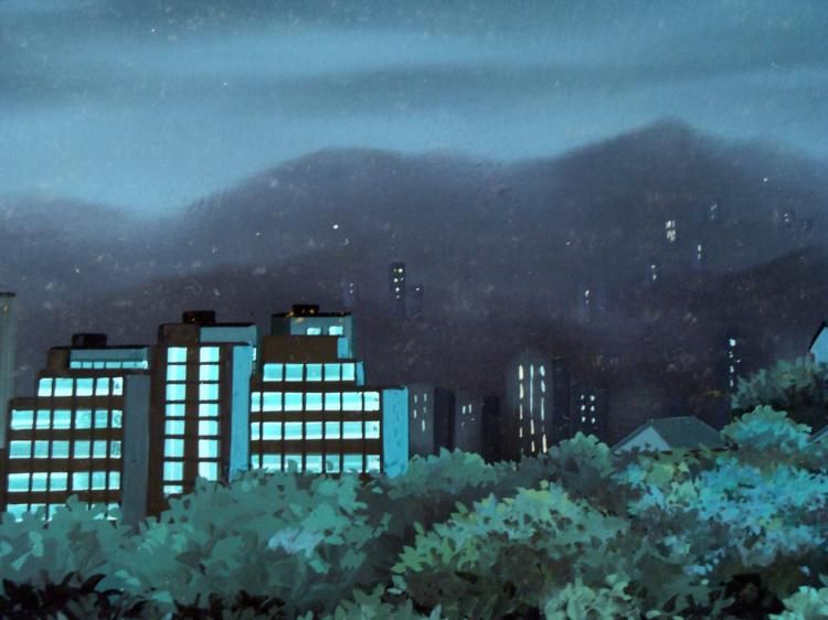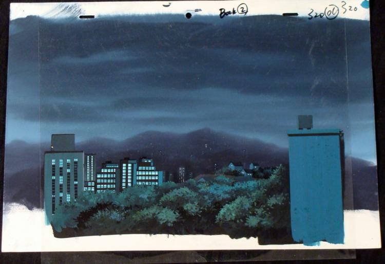 What a peaceful night in this hill-top town. * Original Animation Cel and BackgroundSize of cel: 10 1/2" x 12 1/2"Size of background: 10" x 14"Overall condition: Cel- Very good; smudge marks and Background- Excellent * This is an original hand-painted * cel. Each cel represents a slight change in position of the * characters. When individually photographed and projected * in rapid succession, the images appear to move. To create * production cels, the original animator's * drawing is transferred onto an acetate cel (by hand-inking and/or photo * copying). The cel is then hand-painted on the reverse side. * The background accompanying this cel is a hand-painted original * production background. * * * The background and cel are ready to be matted and * framed. The animators notations are located the bottom of both. The cel has been stapled to the background. * *