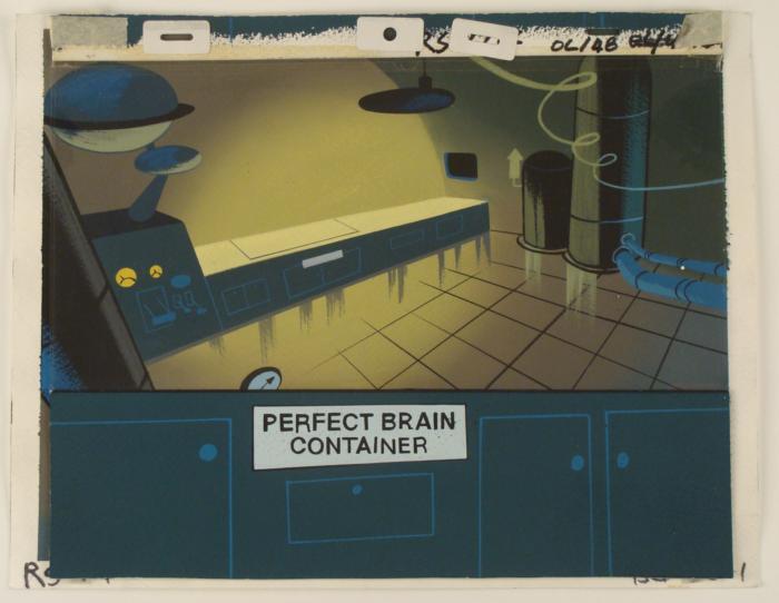 This is an original production animation cel from the Nickelodeon TV show Ren & Stimpy. The show follows two characters - Ren, a crazy Chihuahua - and - Stimpy, an incredibly stupid cat - as they think up to all kinds of hair brained schemes and get themselves into some sticky situations. The Ren and Stimpy Show debuted in August 1991 with a two-part episode, 'Stimpy's Big Day / The Big Shot' and became an instant hit. It was the third Nicktoon ever to be aired on the Network alongside Doug and Rugrats. Its seems to be a laboratory.Original Production Art Cel Cel Overall Size of the Cel: 10 1/2" x 12 1/2" Overall Size of the Background: 10 3/4" x 13 3/4" Very Good condition This is an original hand-painted cel set-up used in the production of an episode of "The Ren & Stimpy Show." Each one-of-a-kind set-up represents a slight change in position of the characters. When individually photographed and projected in rapid succession, the images appear to move.
