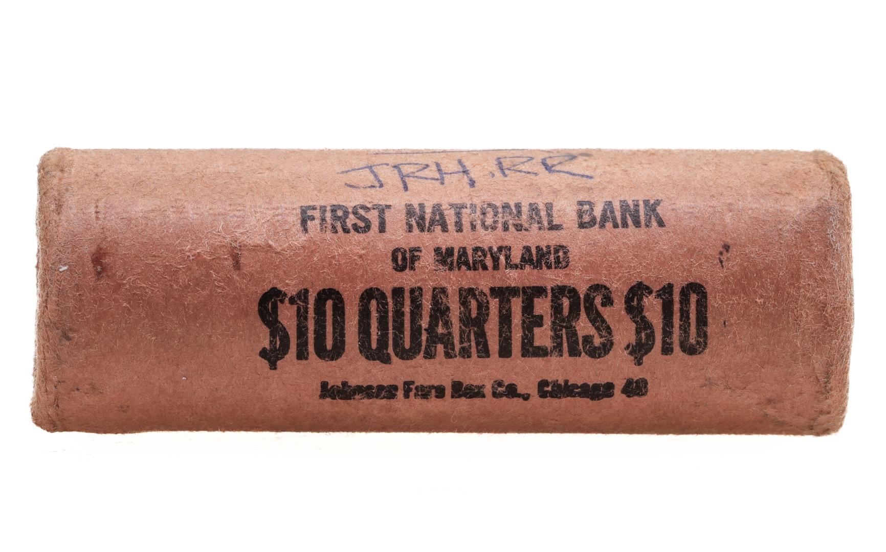 Original Bank Wrapped Roll of (40) Brilliant Uncirculated 1945 Washington Quarter Coins