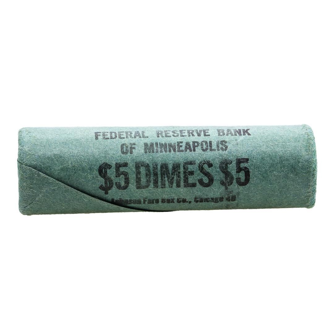 One Original Bank Wrapped Roll of (50) Brilliant Uncirculated 1957-D Roosevelt Dime Coins.