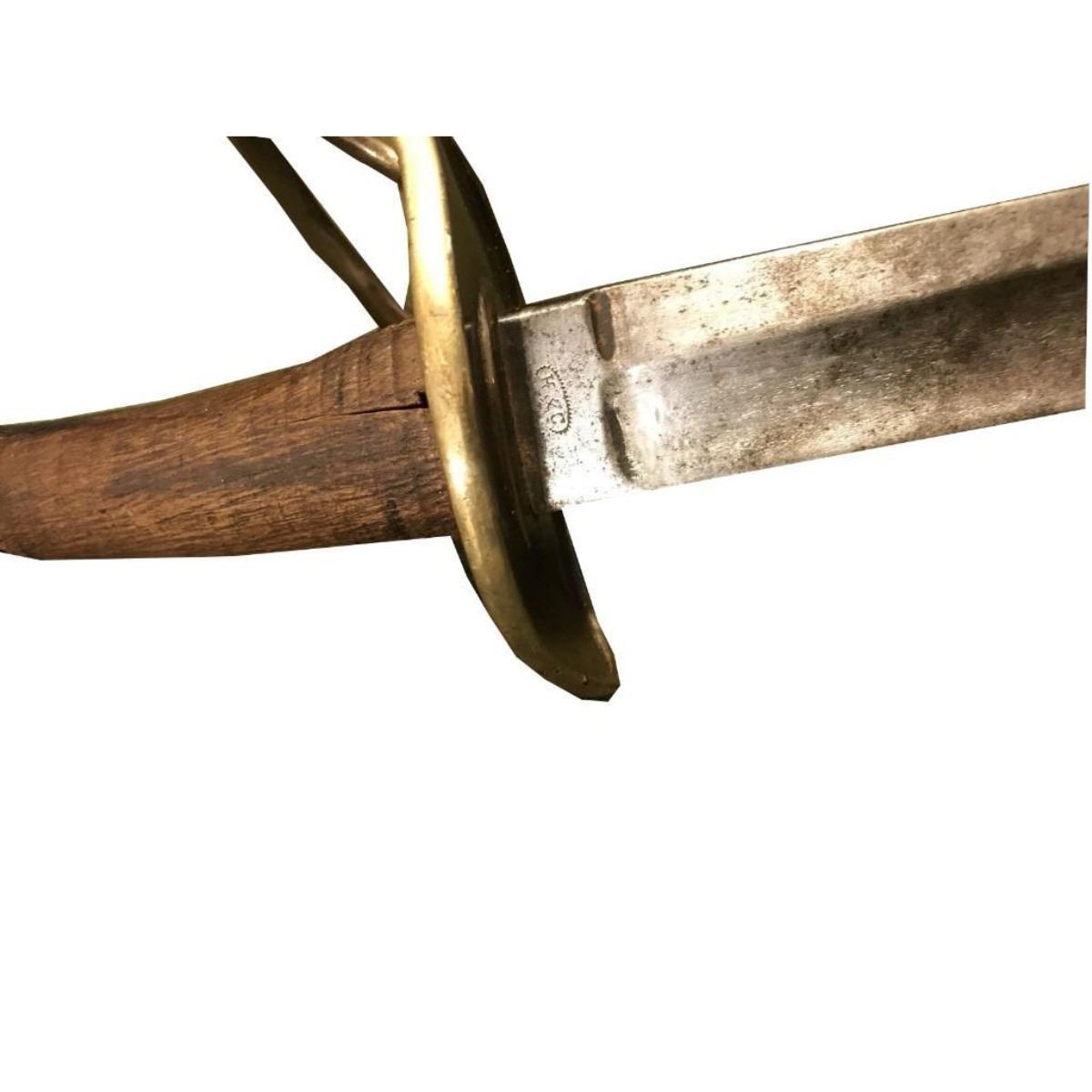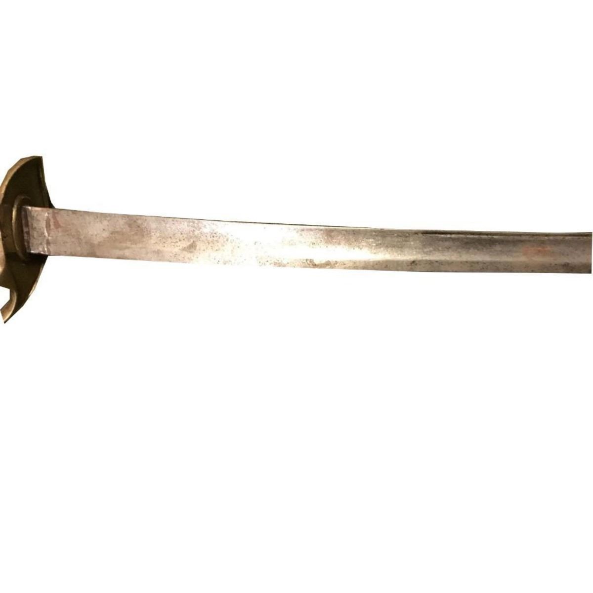 This is a (US Model spec 1840) sword/dsabre purchased in Mobil early 1990s that has K&C on the blade, includes scabbard. Nice sword in good condition. Features some surface rust and most of the leather brass wire grip area is gone due to heavy use or exposure to the elements typical during combat operations. We have not ever cleaned this sword leaving it as found. The Germans made this up based on the 1840 heavy sword US spec full length 42" overall with 36" blade. Blade is nice straight. A perfect display of a long ago era. 42" point to pommel end and 36" long blade. These heavy "wrist breakers" were replaced with a new federal spec the 1860 lighter sword. This sword does show heavy wear around the grip with light wear to the blade such as impact areas. While minor surface rust remains on this historical sword as we have NEVER cleaned it but have used machine oil to preserve it from time to time. - 10737-060818-EB-50933