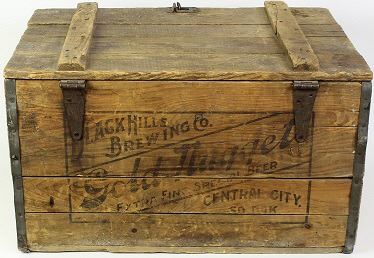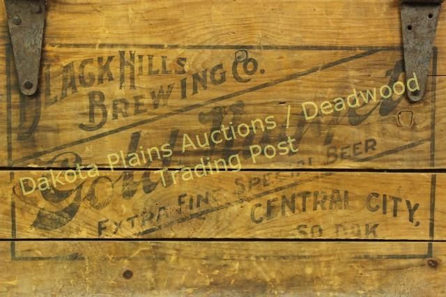 Original Black Hills Brewing Company cratefor Gold Nugget Beer, a nice example, 14"x16"x24", original lid and latch intact, Black Hills Brewing was founded in 1877 in Central City, SD, between historic Deadwood and Lead, the brewery supplied beerthroughout the Black Hills until prohibition ceased their operation in 1928, never to re-open. Est. 300-500