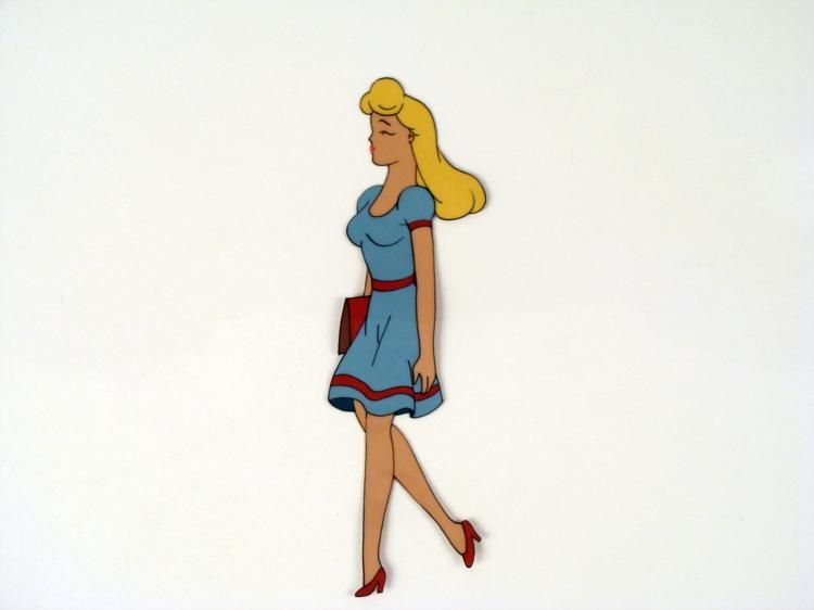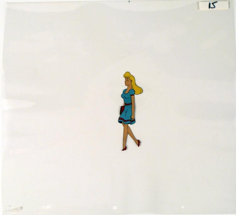 This is an original animation cel a blonde woman. * * * * It's like I'm taking a trip down memory lane... * * * Medium: Hand painted acetate cel * * Cel size: 13 1/2" x 14" * * Condition: Very good; been stored