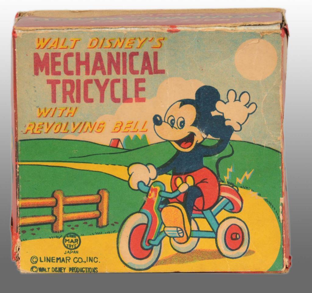 Box only. Marked "Linemar Toys Japan Walt Disney Productions". Box is complete but with some fading, creasing and tears. Collection of Carl Lobel. Condition (Very Good). Size 4" x 4".