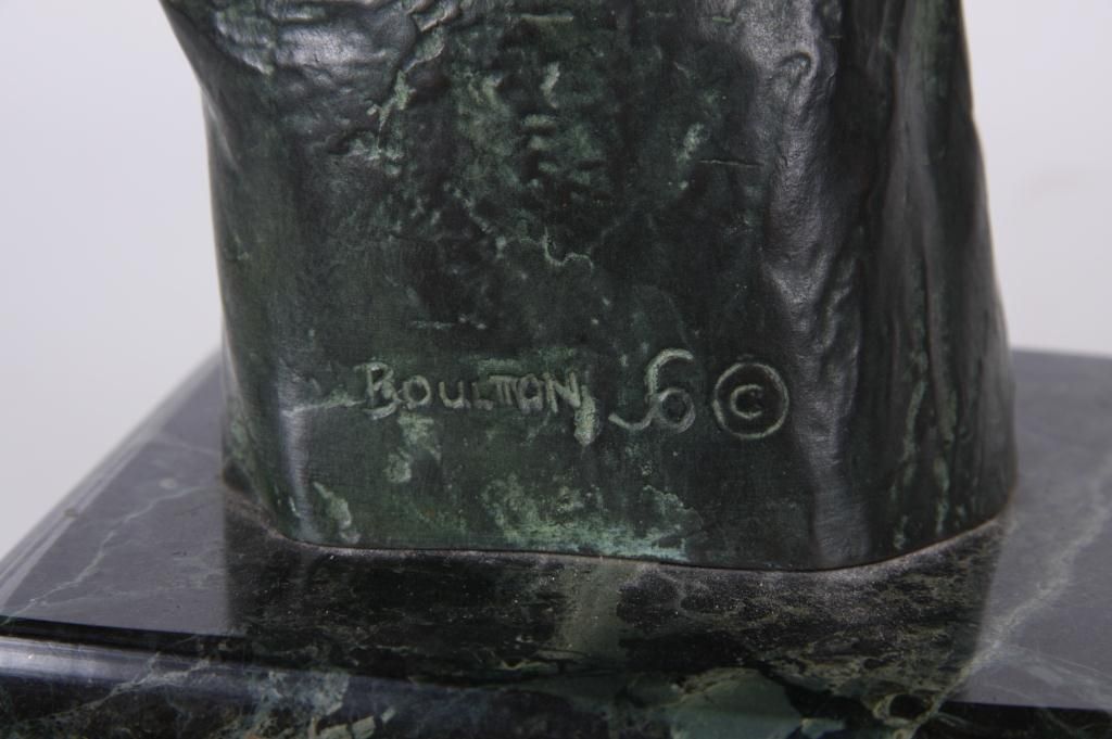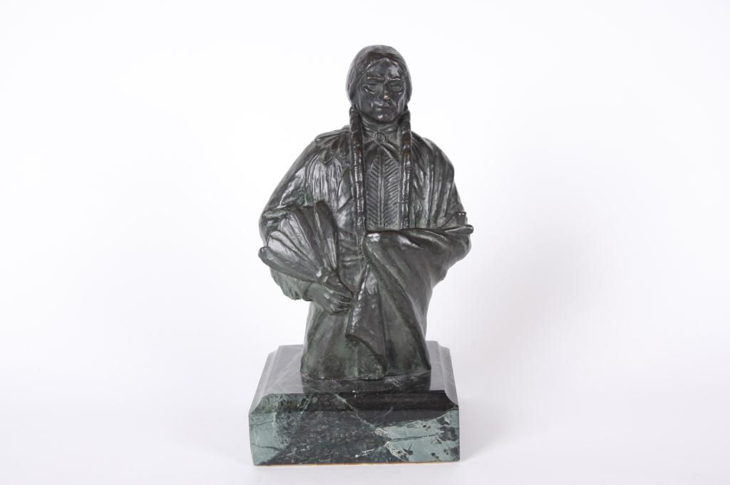 Original Bronze Depicting an Indian ChiefBy Boulton, in a green patina finish on marble base, measures 12"x6".
