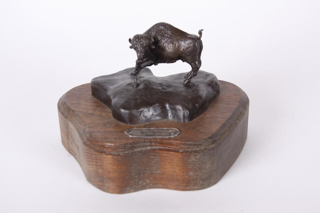 Original Bronze Entitled "Territorial Disputes"By New Mexico artist Gary Cook, #1/10, depicting a buffalo encountering a mole, measures approx 9"x6".