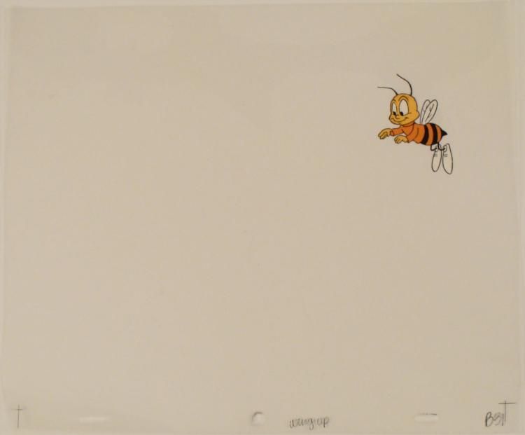 Here, it appears that Buzz is awesome. This is an original animation cel from the production of the Cheerios commercial. * Medium: Hand painted acetate celCel size: 10 1/2 x 12 1/2 inchesDetails: Number and peg holes at the bottom edgeCondition: Very good * * *
