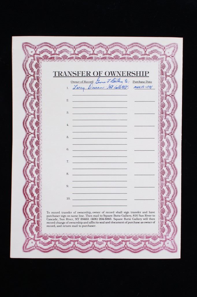 Certificate of authenticity included from Square Butte Gallery of Sun River, Montana. Owner of gallery was Brad Hamlett, currently of the Wrangler Gallery in Great Falls Montana, current home of the C. M. Russell museum and Studio.