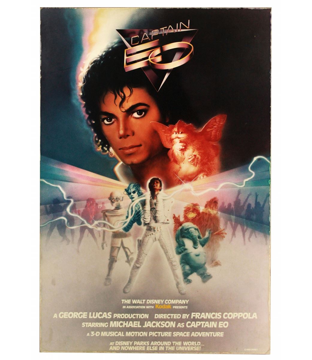 (Disneyland, 1986) A stunning original acrylic printed poster for the Disneyland Captain EO attraction. Measuring 36 x 54 in. with bright and vivid colors and striking imagery. Very Fine condition with ¾ in. chip in lower right corner.