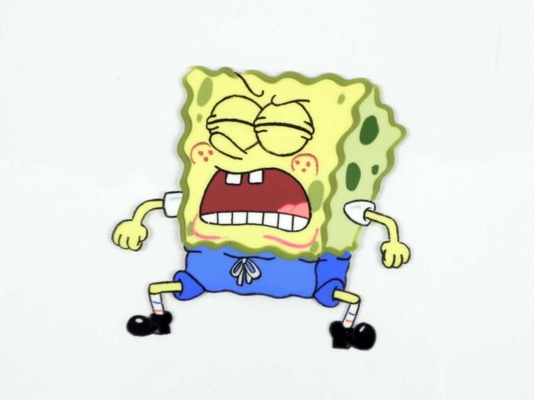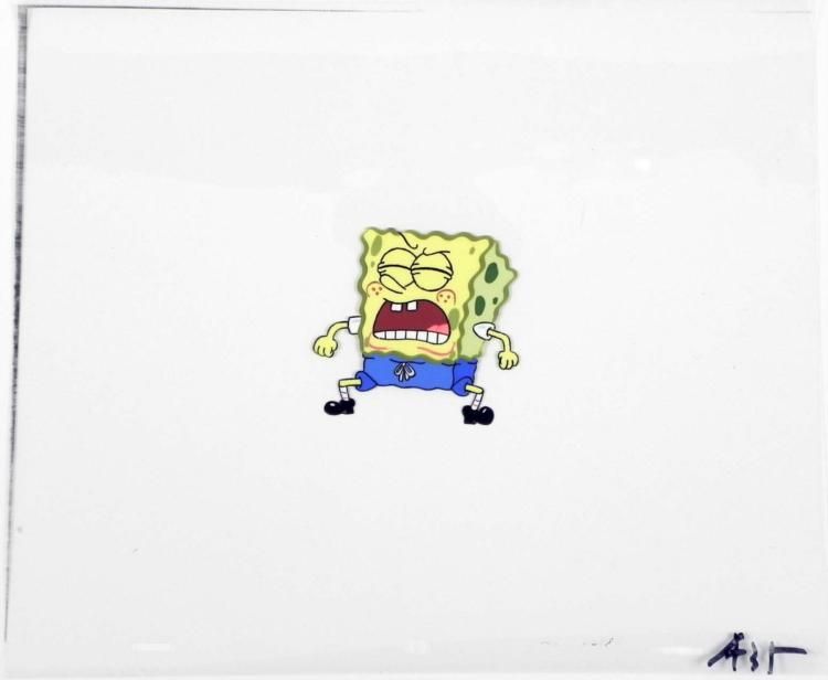 This original animation cel is from the Nickelodeon TV show SpongeBob Squarepants. The story takes place under the deep blue sea in Bikini Bottom, where SpongeBob resides. SpongeBob, who is a yellow,porous sponge, is your typical happy-go-lucky character, as he is always cheerful and enjoys making people laugh. Patrick Star, SpongeBob's neighbor who is a starfish, is your average children's show idiot, as he boasts knowing nothing and is often getting himself into ridiculous situations. Between the homes of these two lies the home of the miserable Squidward, a squid, who is known for being grouchy and playing tricks on SpongeBob and Patrick. Both SpongeBob and Squidward work at the Krusty Krab, a fast food business run by the greedy money-loving Mr. Krabs, a crab, the arch rival of the evil, possibly misunderstood, Plankton. Another neighbor, Sandy Cheeks, an athletic squirrel who normally wears an astronaut's space suit, was introduced in "Tea at the Treedome." She spends most of her time inventing and experimenting. * I never knew Spongebob's voice could get that high... Someone must have really sent Spongebob over the edge... * * Original Production Animated Cel Overall Size of Cel: 10 1/2" x 12 1/2" Excellent ConditionThis is an original hand-painted cel set-up used in the production of an episode of "SpongeBob SquarePants." Each one-of-a-kind set-up represents a slight change in position of the characters. When individually photographed and projected in rapid succession, the images appear to move. * To create production cels, the original animator's drawing is transferred onto an acetate cel (by hand-inking and/or photo copying). The cel is then hand-painted on the reverse side. * The cel is ready to be matted and framed. The animator's notations are at the bottom of the cel. *