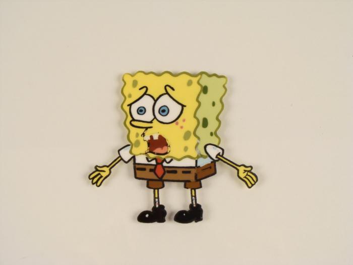 This original animation cel is from the Nickelodeon TV show SpongeBob Squarepants. The story takes place under the deep blue sea in Bikini Bottom, where SpongeBob resides. SpongeBob, who is a yellow, porous sponge, is your typical happy-go-lucky character, as he is always cheerful and enjoys making people laugh. Patrick Star, SpongeBob's neighbor who is a starfish, is your average children's show idiot, as he boasts knowing nothing and is often getting himself into ridiculous situations. Between the homes of these two lies the home of the miserable Squidward, a squid, who is known for being grouchy and playing tricks on SpongeBob and Patrick. Both SpongeBob and Squidward work at the Krusty Krab, a fast food business run by the greedy money-loving Mr. Krabs, a crab, the arch rival of the evil, possibly misunderstood, Plankton. Another neighbor, Sandy Cheeks, an athletic squirrel who normally wears an astronaut's space suit, was introduced in "Tea at the Treedome." She spends most of her time inventing and experimenting. SpongeBob has is arms out.Original Production Animated Cel Overall Size of Cel: 10 1/2" x 12 1/2" Very Good ConditionThis is an original hand-painted cel set-up used in the production of an episode of "SpongeBob SquarePants." Each one-of-a-kind set-up represents a slight change in position of the characters. When individually photographed and projected in rapid succession, the images appear to move.