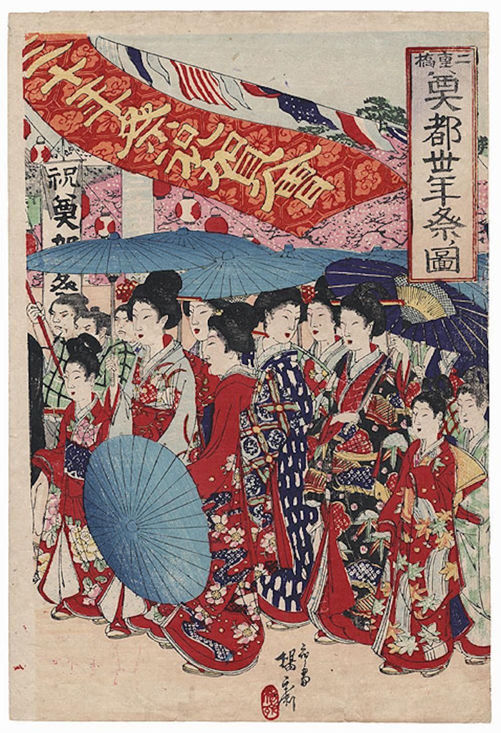 Original Chikanobu (1838 - 1912) Japanese Woodblock Print, FINE CONDITION, Oban, approximately 9 1/2" x 14 1/2"