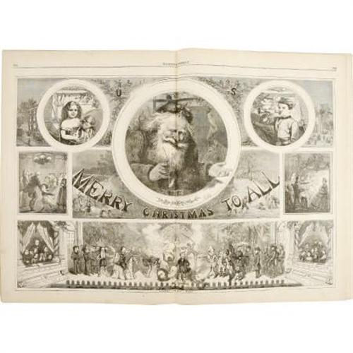 <B>Original Civil War Era Issue of </B></I><B><I>Harper's Weekly</B></I></B></I> (New York: Harper Brothers, 1865), 16 pages, elephant folio (11.5" x 16"), with the typical yellowing and very minor chipping to pages due to the high acid content of the paper. This is a December 30, 1865 Christmas issue. The cover is an engraving of The Holy Family by Murillo. There is a double page engraving of the Merry Christmas to All by Thomas Nast. This issue is in very good condition.<BR><BR><BR><b>Shipping:</b> Flat Material, Large (<a target="_blank" href="http://www.heritageauctions.com/common/shipping.php">view shipping information</a>)