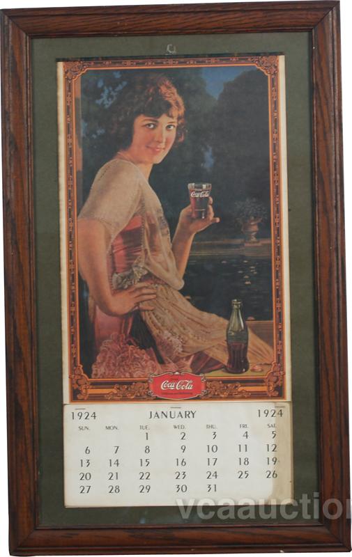 Original Coca Cola Calendar Advertisement w/ metal strip on top & 1924 date pad in frame - 16" x 26"