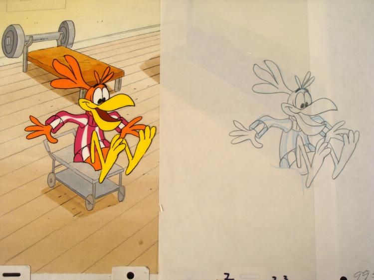 Woooooo, this is way to fun. * * * Original Production Background, Drawing, and Animated Cel * Overall Size of Background: 10 1/2" x 14" Overall Size of the Cel: 10 1/2" x 12 1/2" Original "rough" animation drawing, in non-photo blue and black pencil, with notations in black. * * * Overall Size of Drawing: 10 1/2" x 12 1/2"Excellent Condition * * * This is an original hand-painted cel set-up used in the production of a "Coco Puffs" TV Commercial. Each one-of-a-kind set-up represents a slight change in position of the characters. When individually photographed and projected in rapid succession, the * images appear to move. * * To create production cels, the original animator's drawing is transferred onto an acetate cel (by hand-inking and/or photo copying). The cel is then hand-painted on the reverse side. The background accompanying this set-up is a hand-painted original production * background. * * The background, drawing, and cel are ready to be matted and framed. It is a colored background with a cel and has the animator's notations at the bottom of all of them. * * *