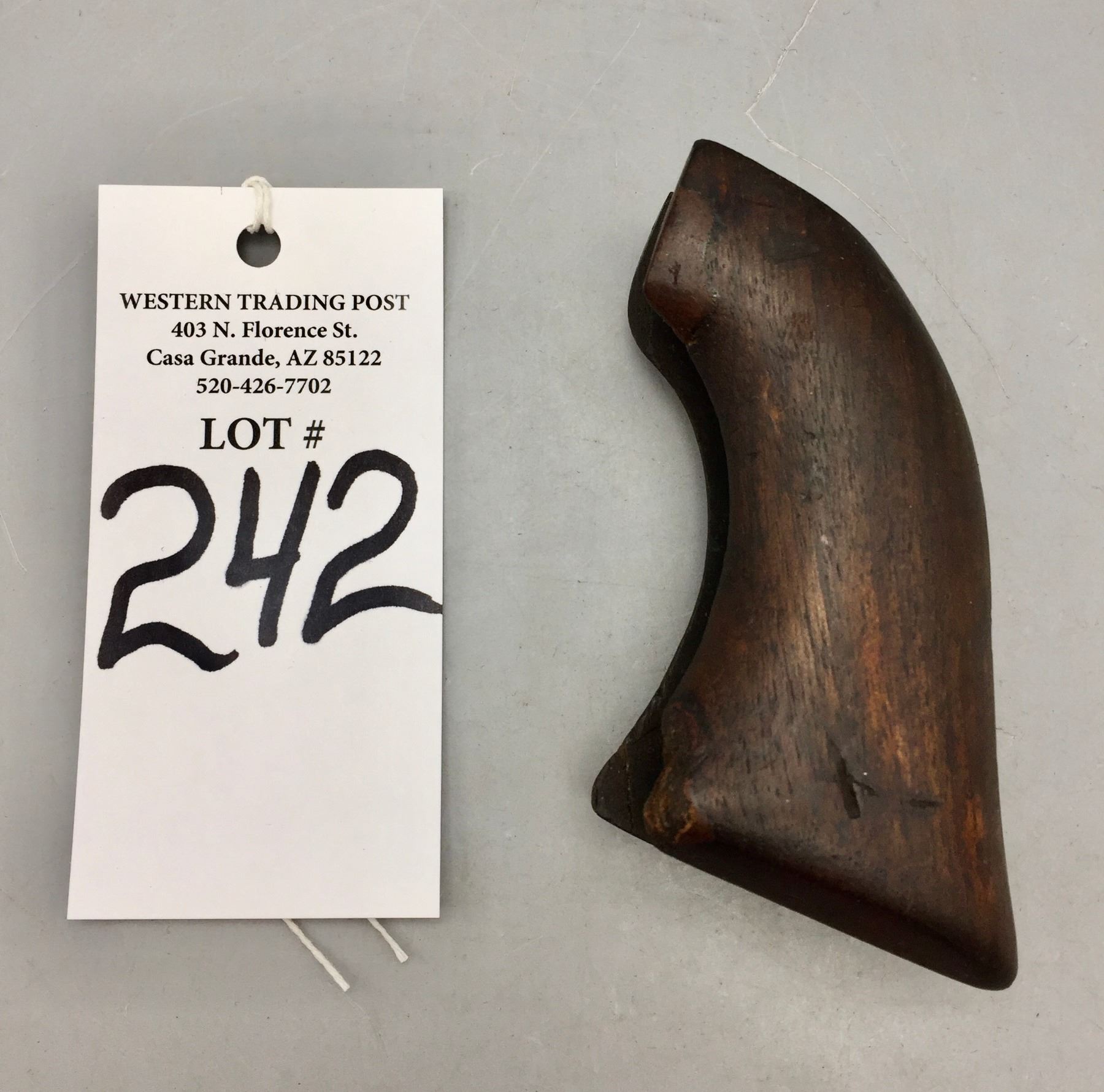 Description: Presented for sale in this lot is an original Colt Dragoon one piece, walnut grips. These are rare to find in original condition! Maker: Colt. Approx. Age: Mid-1800s. Size: 2”w x 4-1/2” long. Condition: Pretty good for its age, normal wear expected. Please look closely at the pictures - they are an important part of our description. Shipping: There will be a $5 handling / packaging fee for shipping this lot. The actual cost of postage will be added on top of that.
