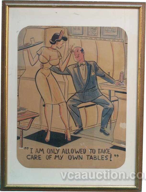 Original Comic Art Work In Original Frame "I Am Only Allowed To Take Care Of My Own Tables!" c1940's - 1950's - 19" x 26"